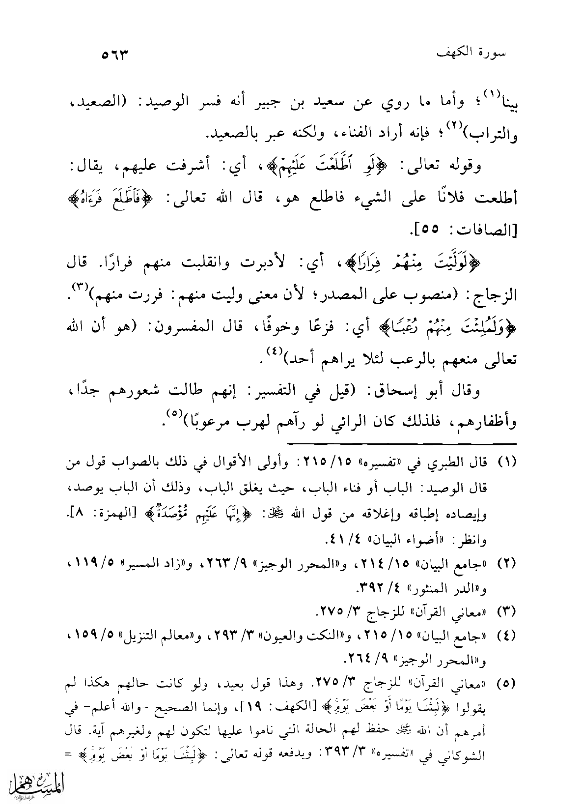 بينا (¬1)؛ وأما ما روي عن سعيد بن جبير أنه فسر الوصيد: (الصعيد، والتراب) (¬2)؛ فإنه أراد الفناء، ولكنه عبر بالصعيد.