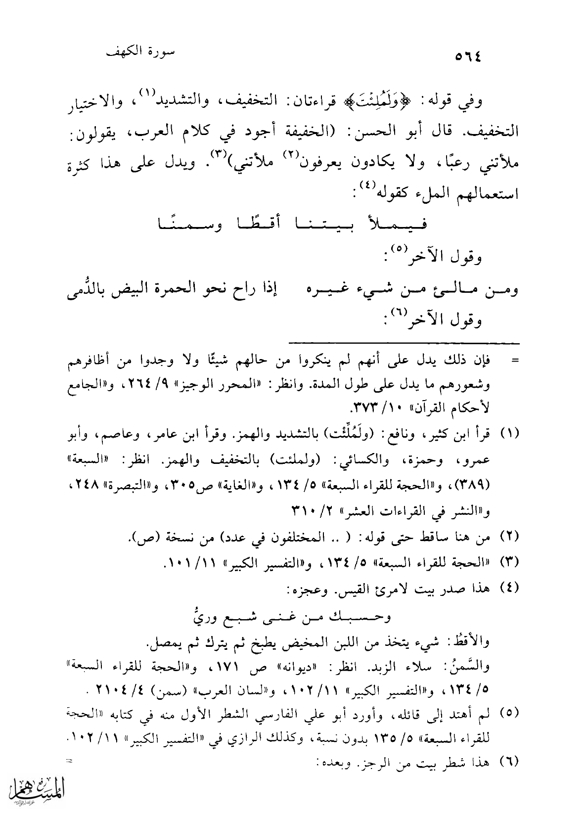 (¬3) "الحجة للقراء السبعة" 5/ 134، و"التفسير الكبير" 11/ 101.