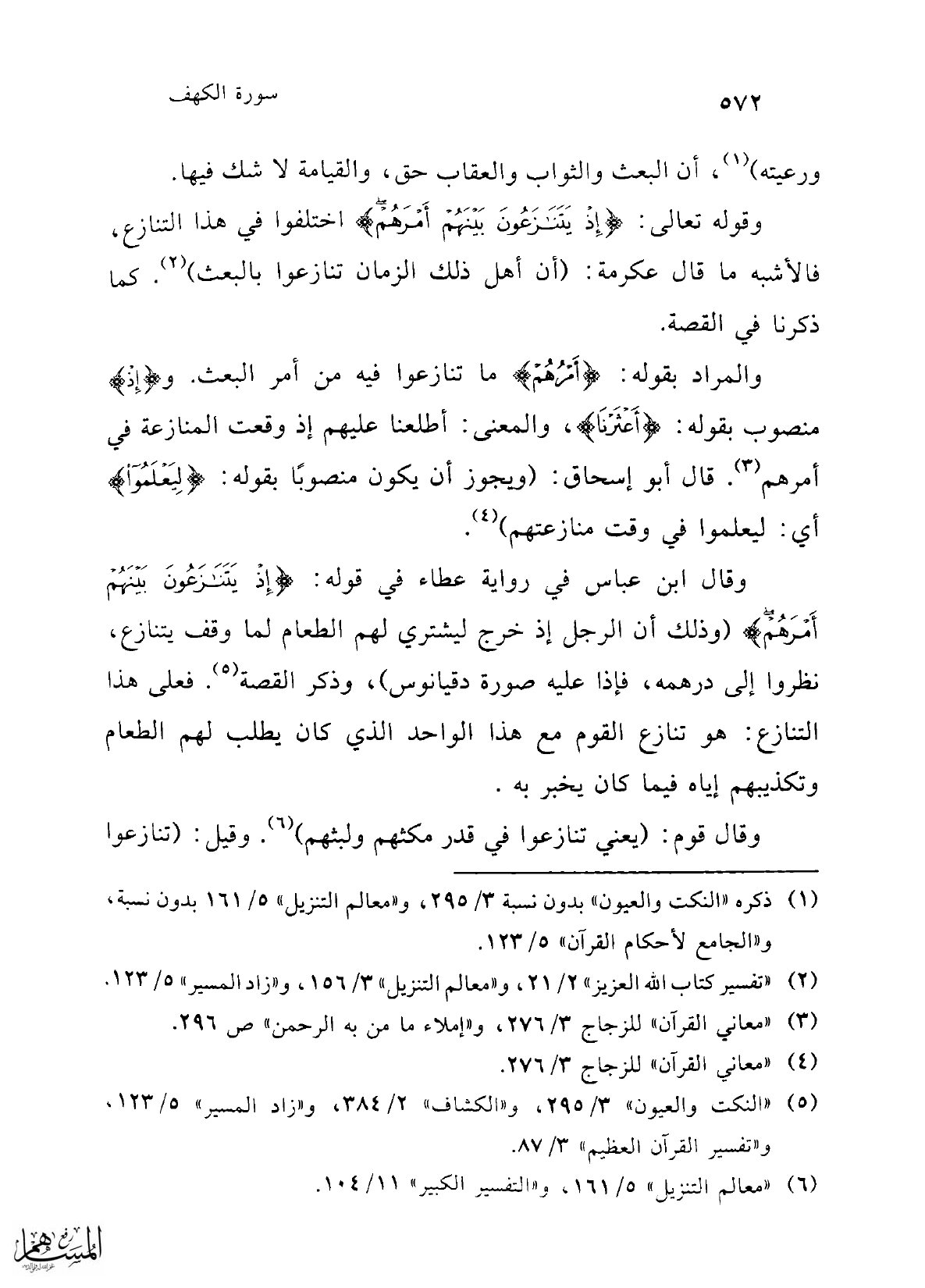 (¬5) "النكت والعيون" 3/ 295، و"الكشاف" 2/ 384، و"زاد المسير" 5/ 123، و"تفسير القرآن العظيم" 3/ 87.