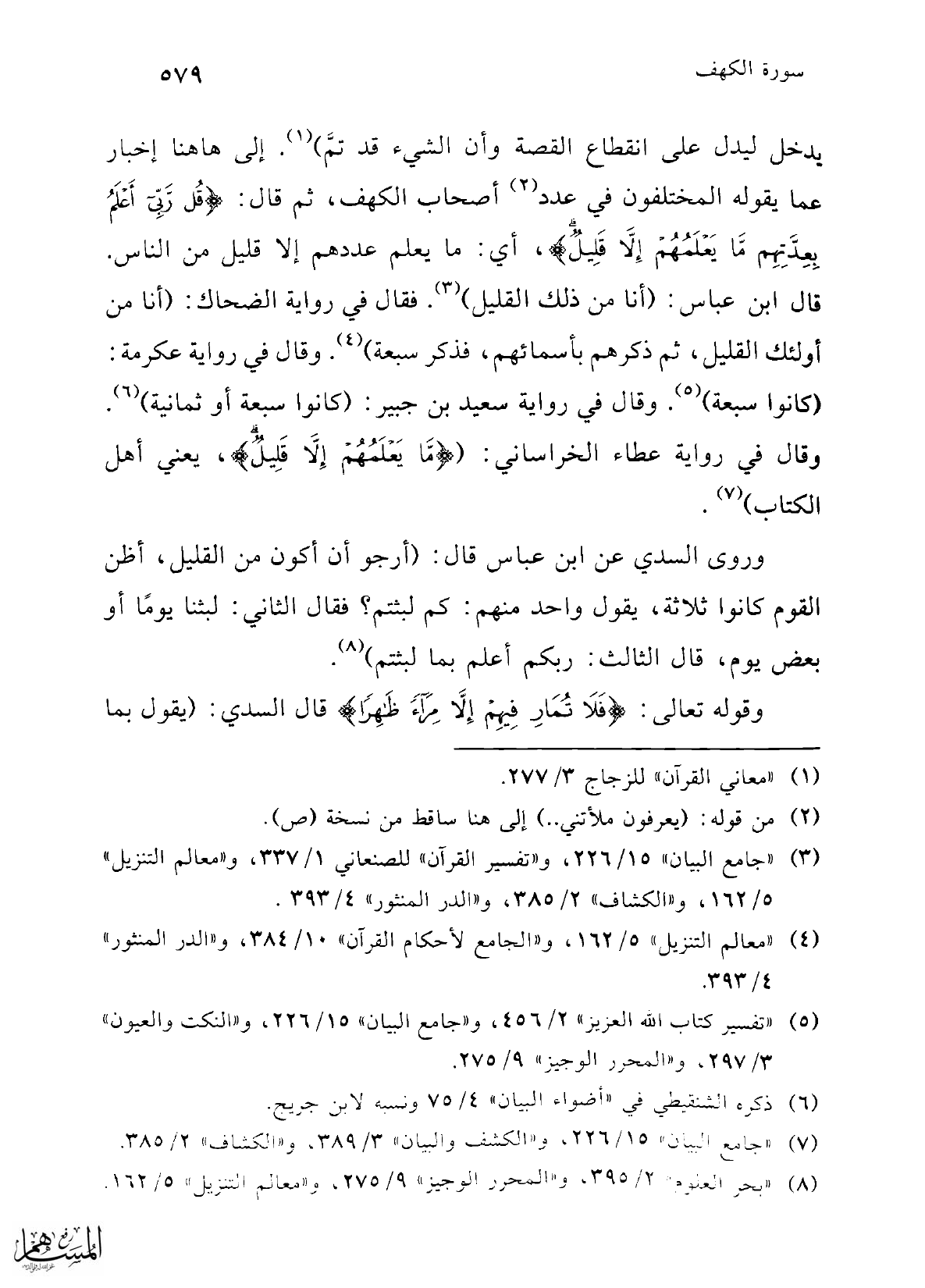 (¬8) "بحر العلوم" 395/ 2، و"المحرر الوجيز" 9/ 275، و"معالم التنزيل" 162/ 5.