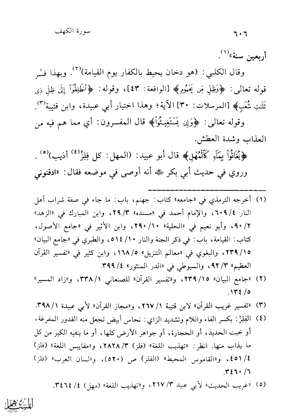 {يُغَاثُوا بِمَاءٍ كَالْمُهْلِ} قال أبو عبيد: (المهل: كل فِلِزٍّ (¬4) أذيب) (¬5).
