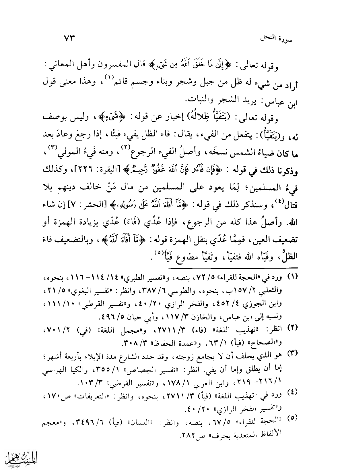 (¬4) ورد في "تهذيب اللغة" (فيأ) 3/ 2711، بنحوه، وانظر: "التعريفات" ص 170، و"تفسير الفخر الرازي" 20/ 40.