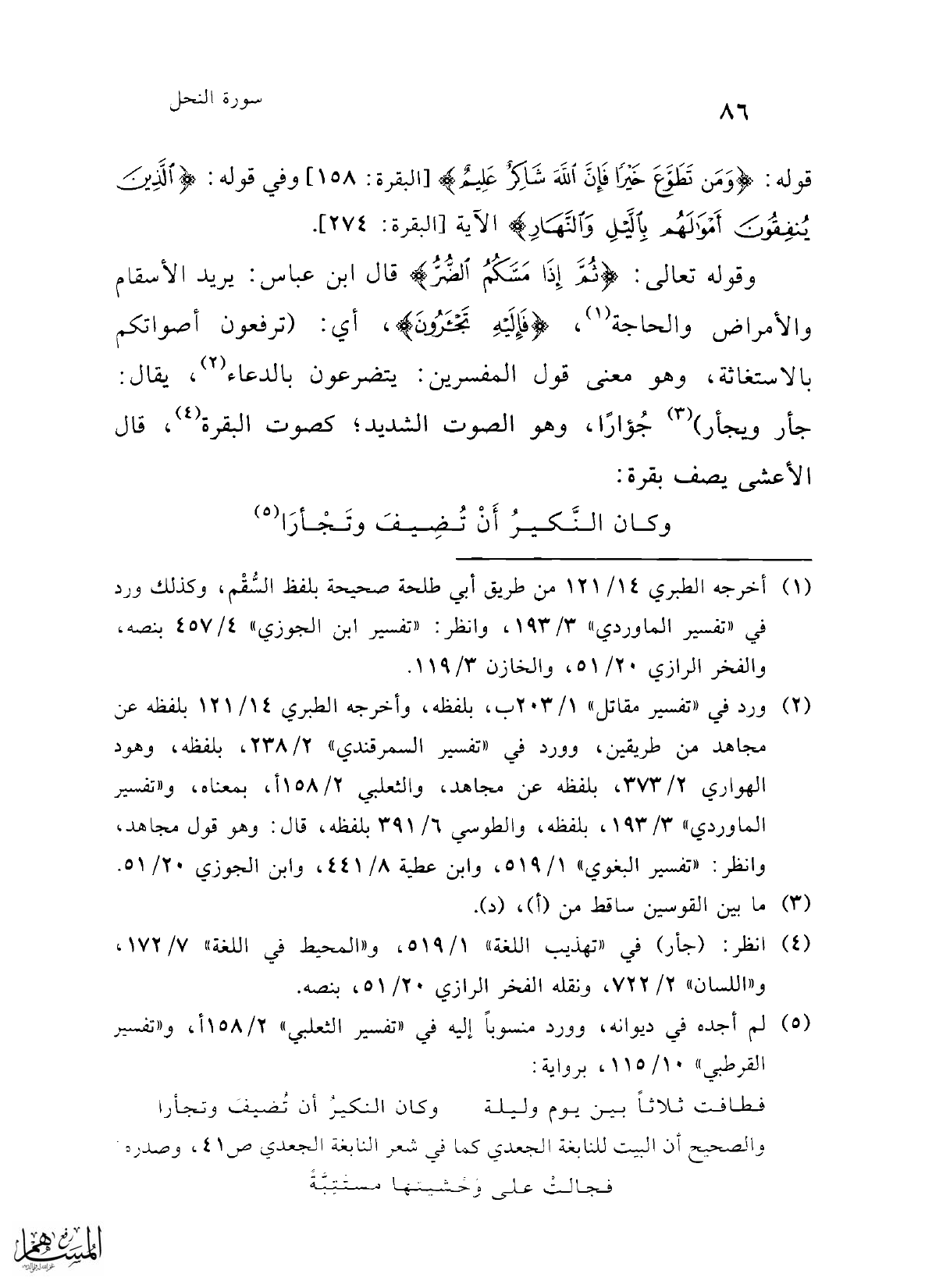 (¬4) انظر: (جأر) في "تهذيب اللغة" 1/ 519، و"المحيط في اللغة" 7/ 172، و"اللسان" 2/ 722، ونقله الفخر الرازي 20/ 51، بنصه.
