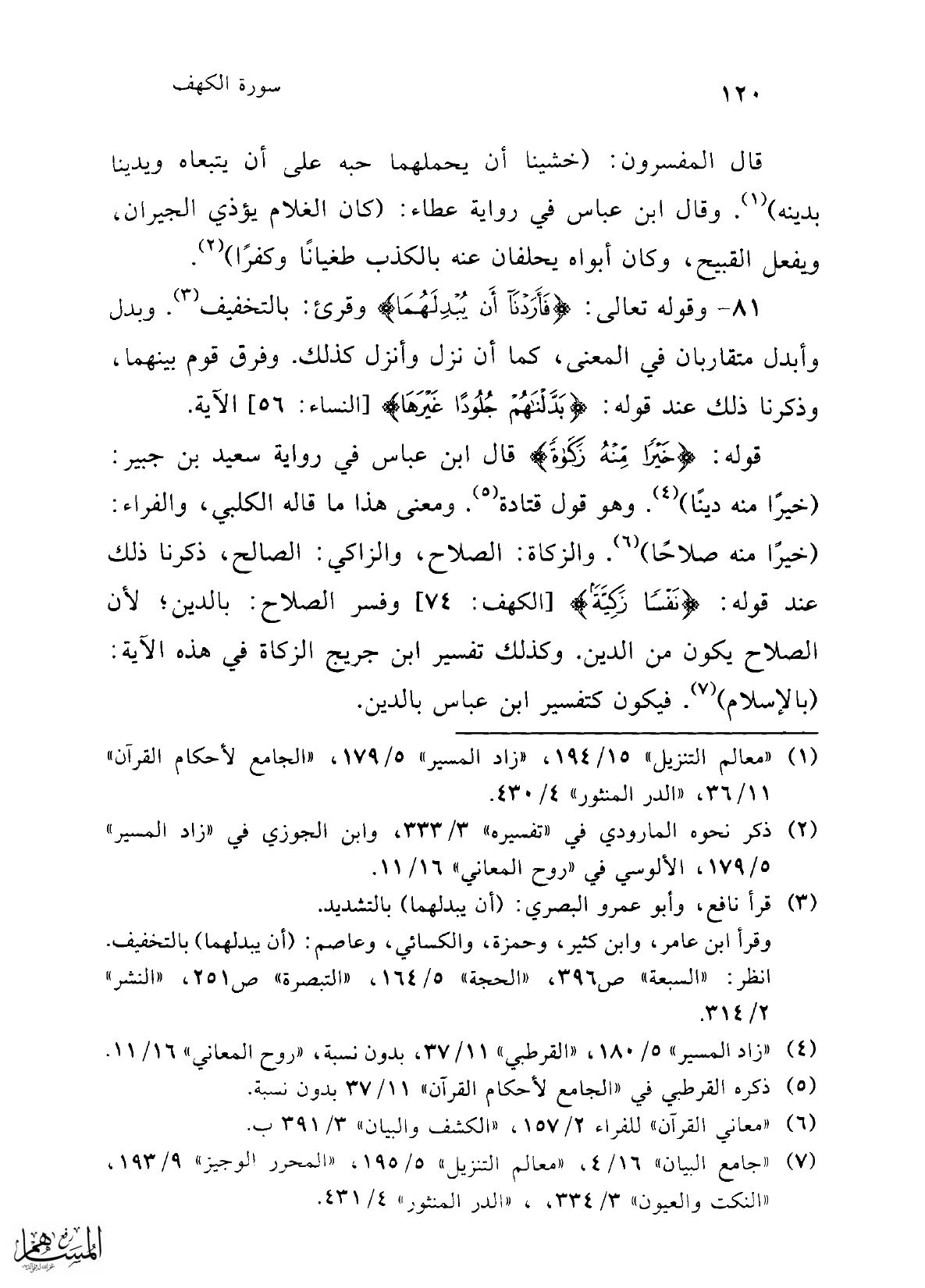 (¬1) "معالم التنزيل" 15/ 194، "زاد المسير" 5/ 179، "الجامع لأحكام القرآن" 11/ 36، "الدر المنثور" 4/ 430.