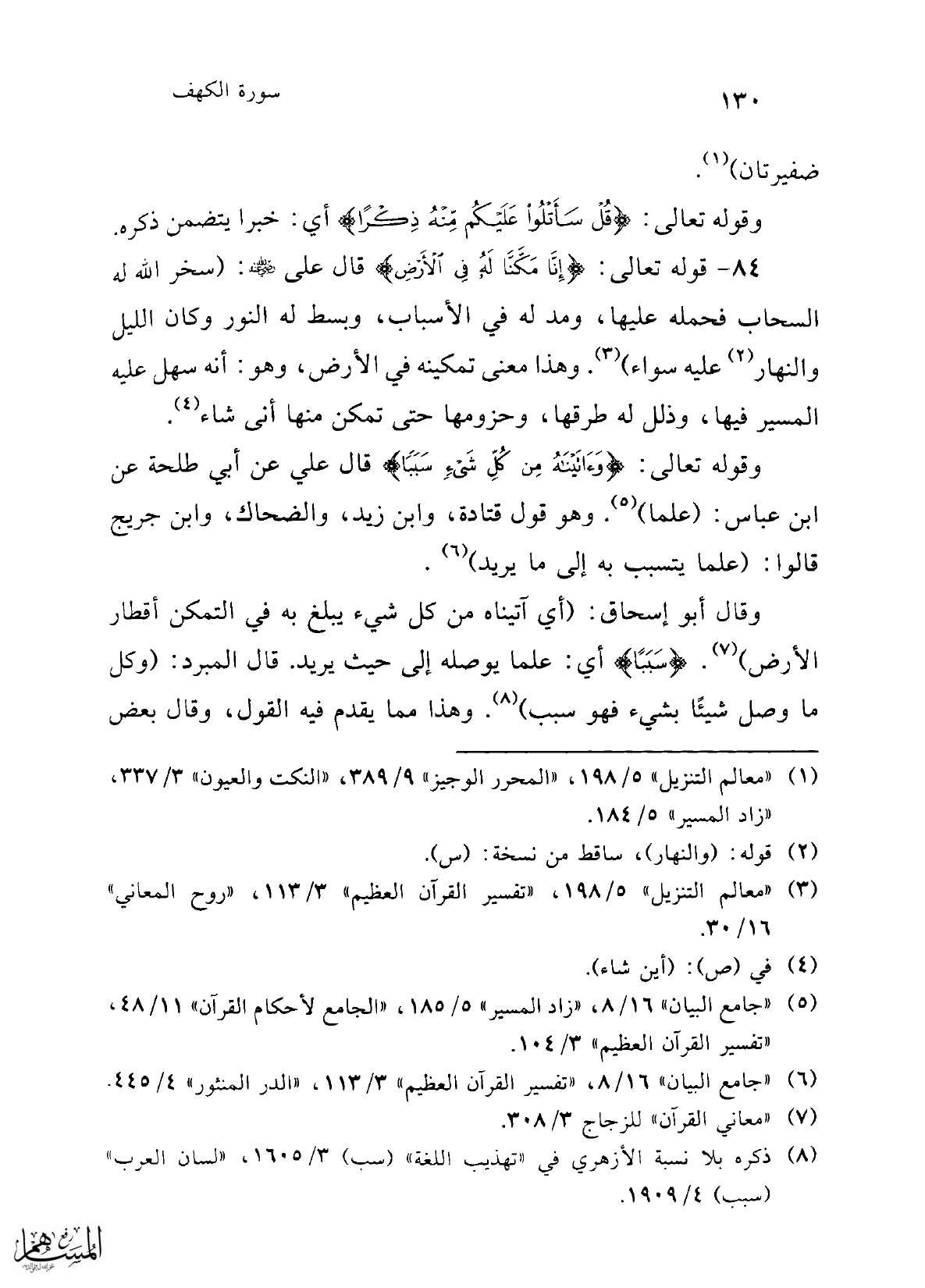 وقوله تعالى: {وَآتَيْنَاهُ مِنْ كُلِّ شَيْءٍ سَبَبًا} قال علي عن أبي طلحة عن ابن عباس: (علما) (¬5). وهو قول قتادة، وابن زيد، والضحاك، وابن جريج قالوا: (علما يتسبب به إلى ما يريد) (¬6).