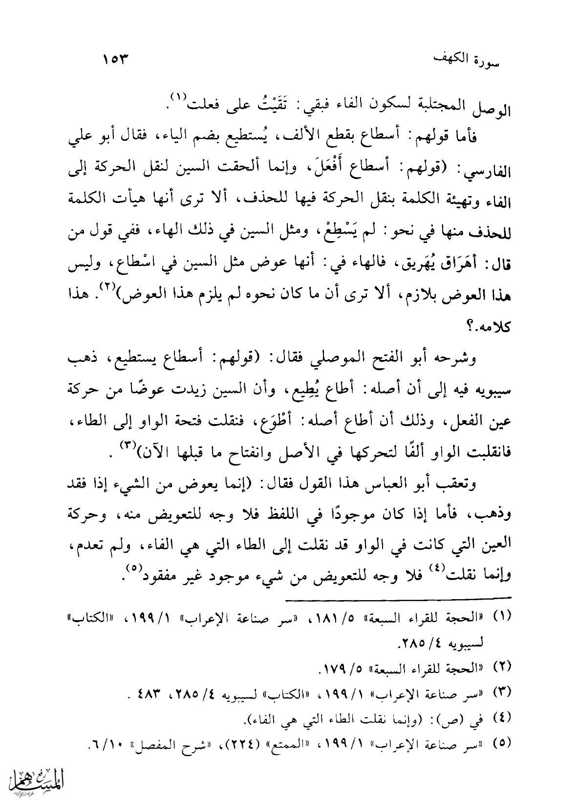 (¬5) "سر صناعة الإعراب" 1/ 199، "الممتع" (224)، "شرح المفصل" 10/ 6.
