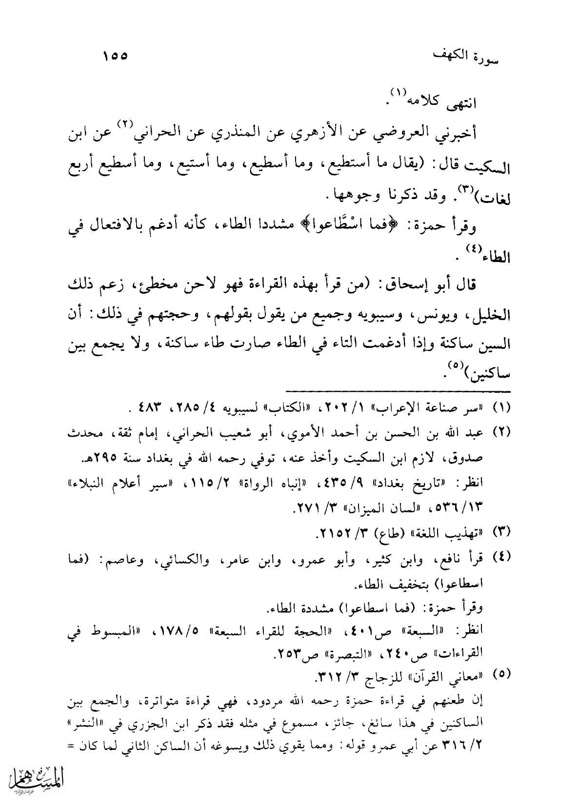 (¬4) قرأ نافع، وابن كثير، وأبو عمرو، وابن عامر، والكسائي، وعاصم: (فما اسطاعوا) بتخفبف الطاء.