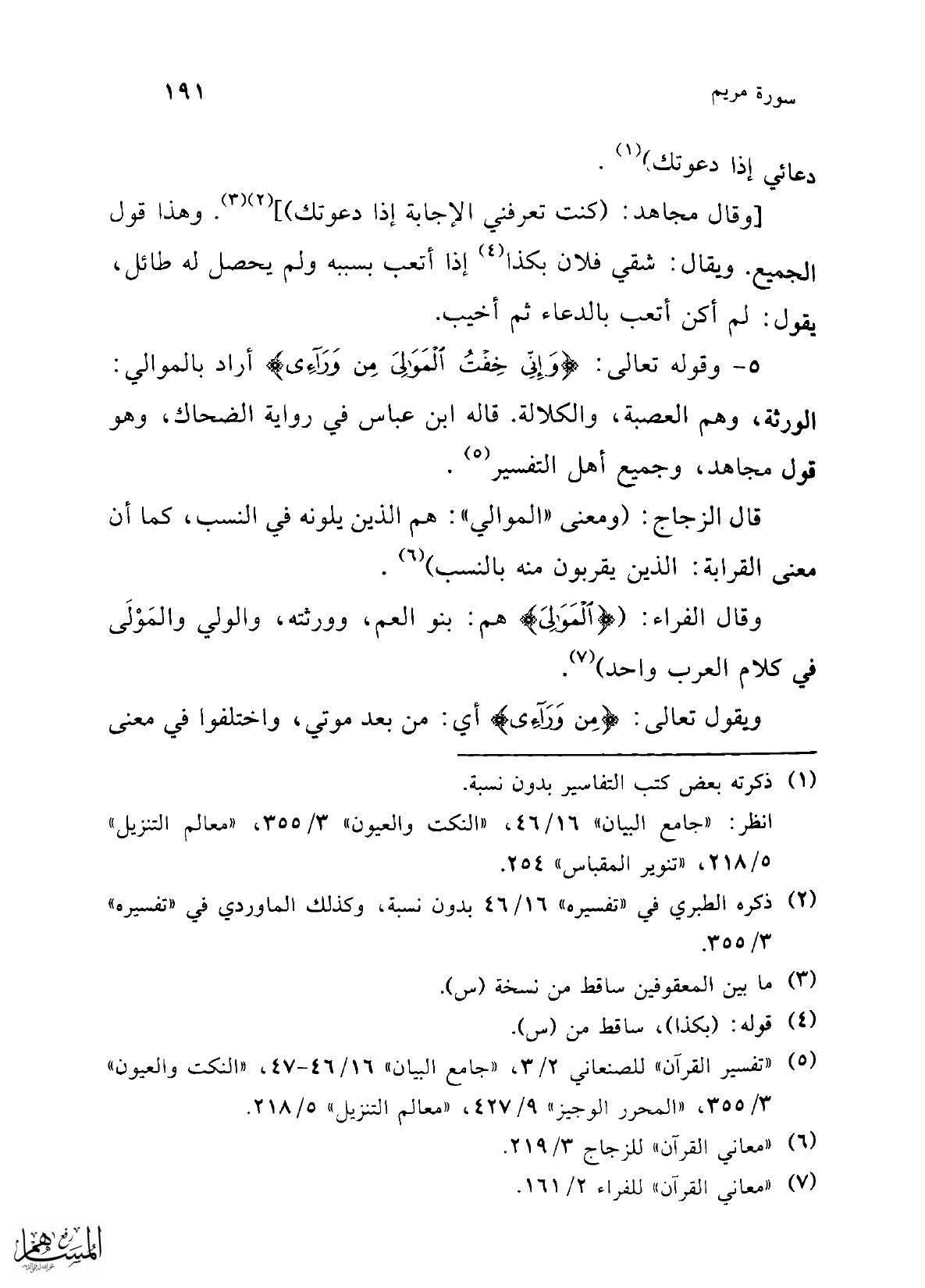 (¬7) "معاني القرآن" للفراء 2/ 161.