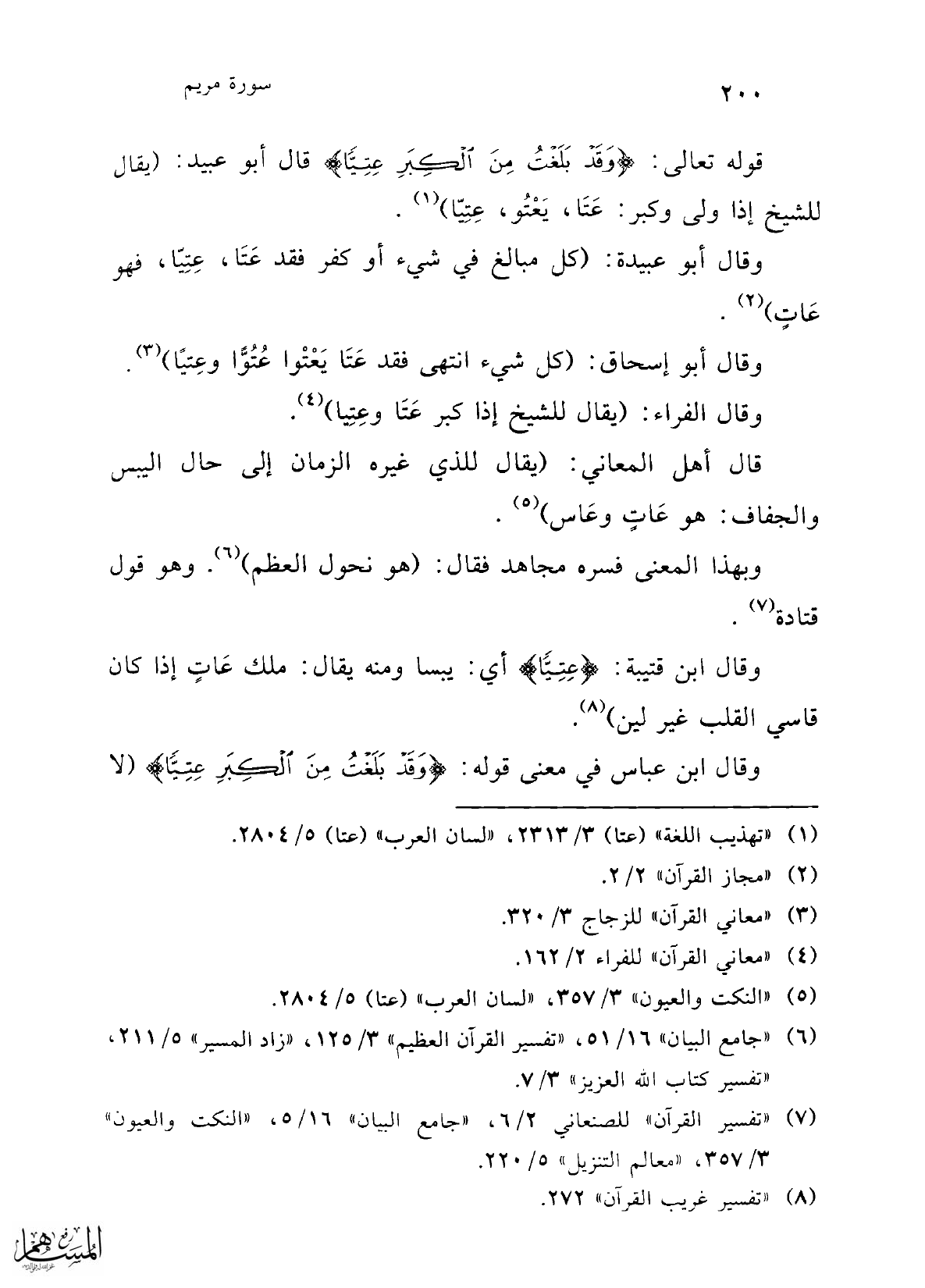 (¬5) "النكت والعيون" 3/ 357، "لسان العرب" (عتا) 5/ 2804.
