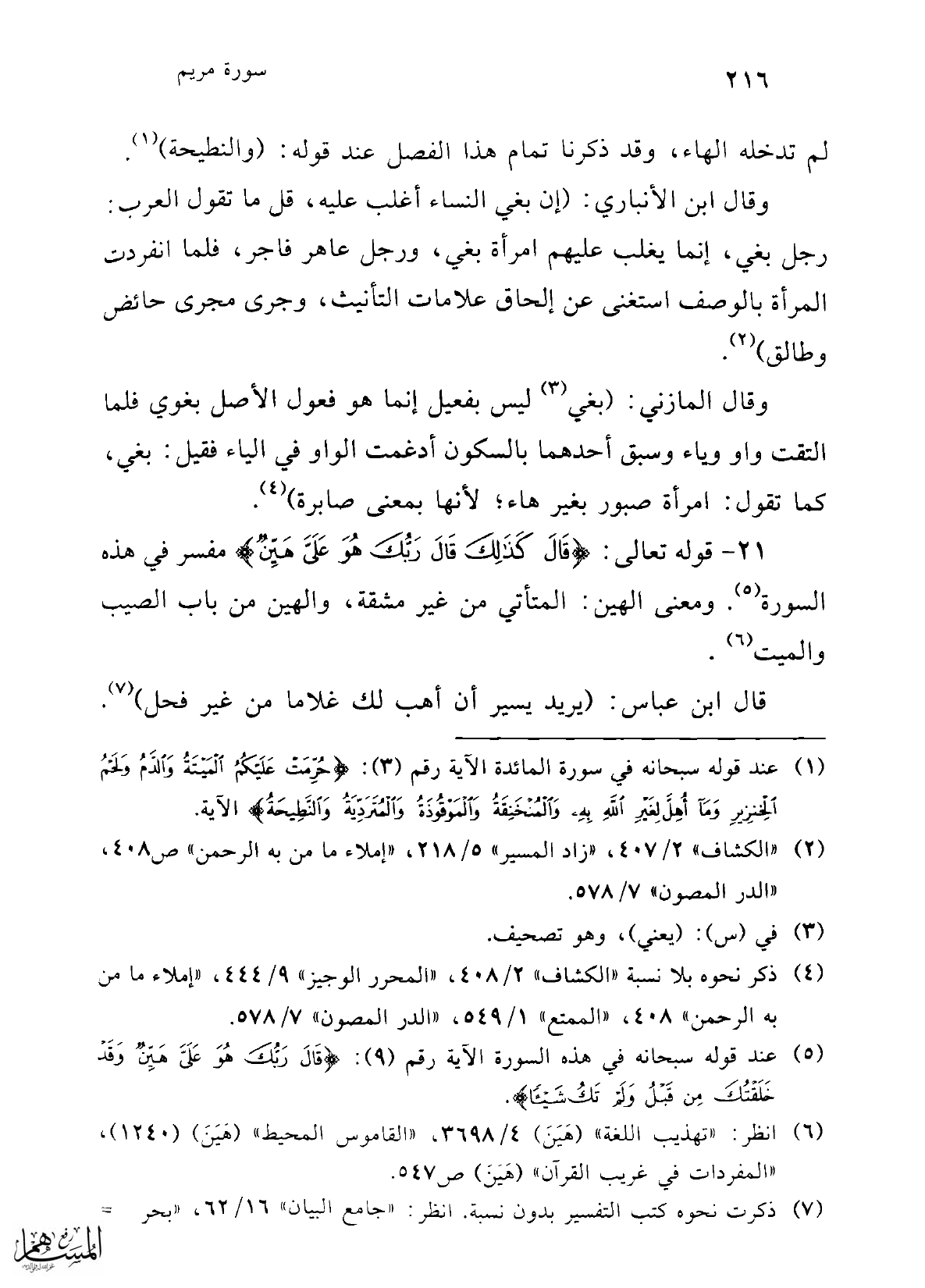 (¬6) انظر: "تهذيب اللغة" (هَيَن) 4/ 3698، "القاموس المحيط" (هَيَنَ) (1240)، "المفردات في غريب القرآن" (هَيَن) ص 547.