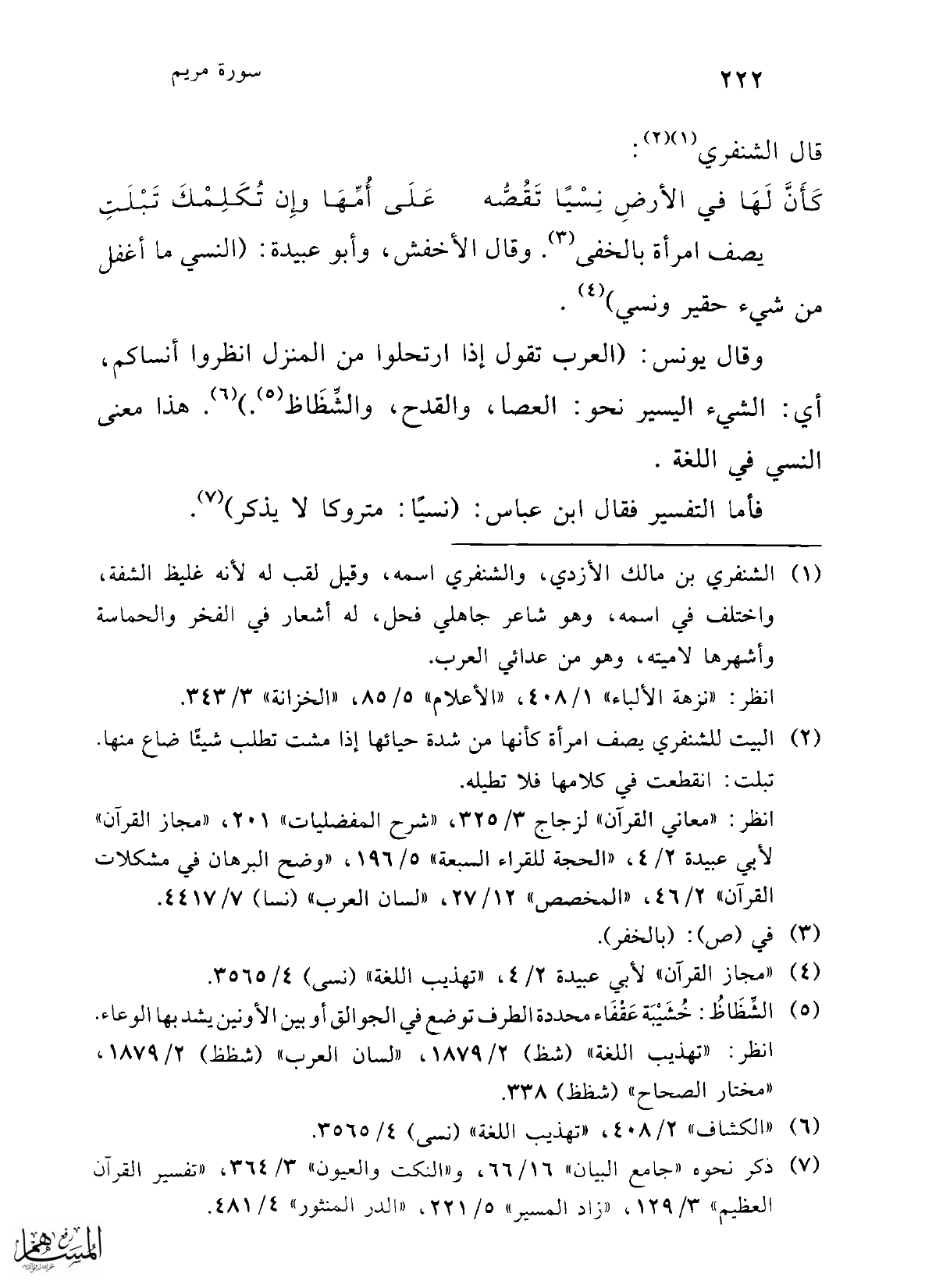 (¬4) "مجاز القرآن" لأبي عبيدة 2/ 4، "تهذيب اللغة" (نسى) 4/ 3565.