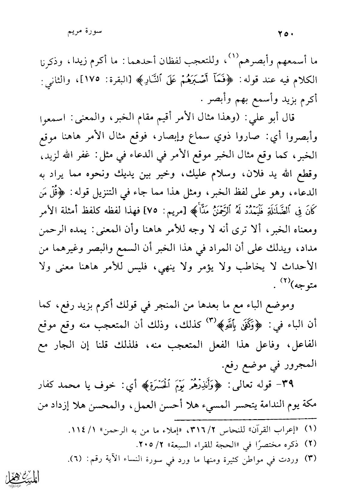 (¬1) "إعراب القرآن" للنحاس 2/ 316، " إملاء ما من به الرحمن" 1/ 114.