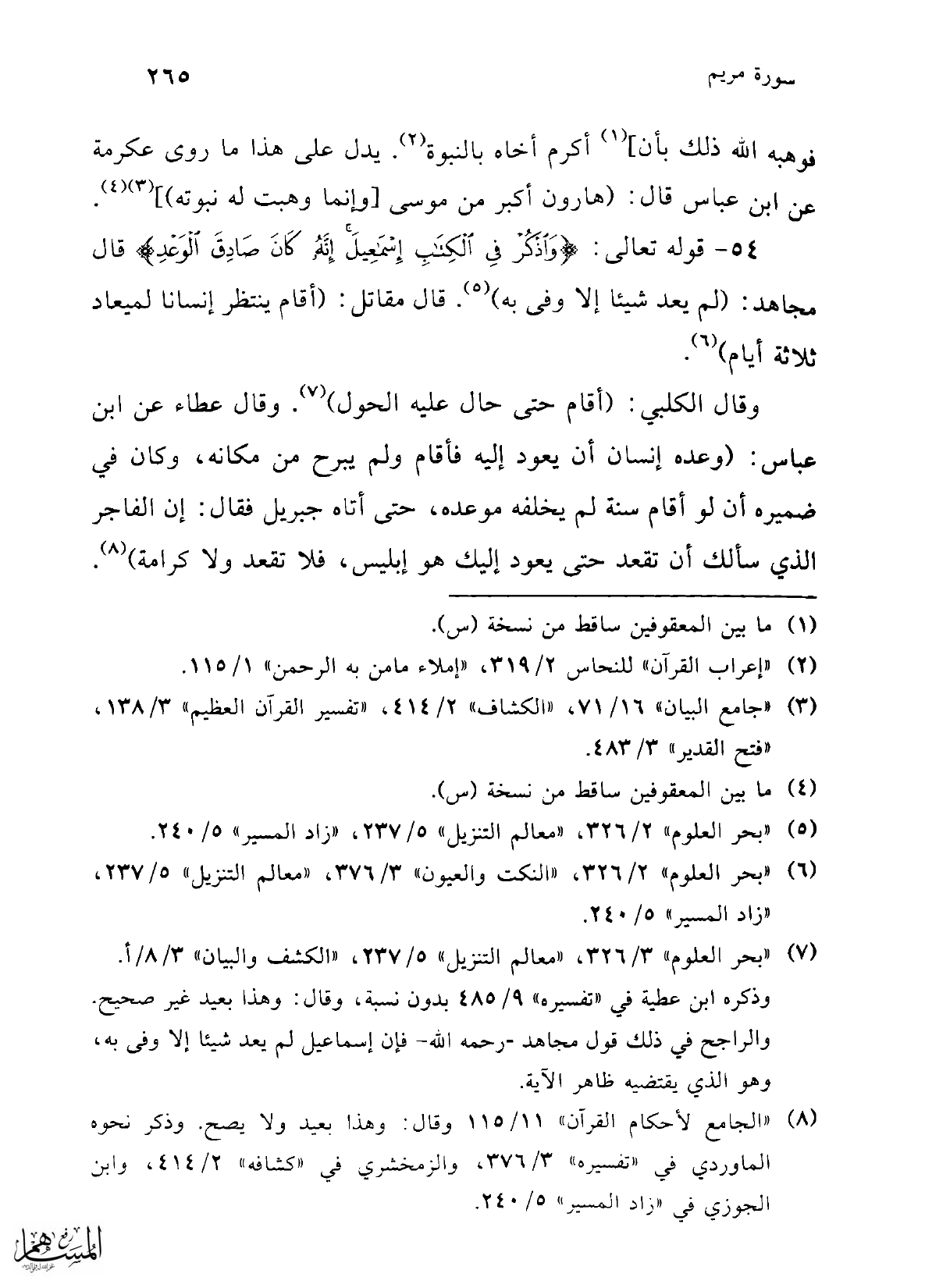 (¬6) "بحر العلوم" 2/ 326، "النكت والعيون" 3/ 376، "معالم التنزيل" 5/ 237، "زاد المسير" 5/ 240.