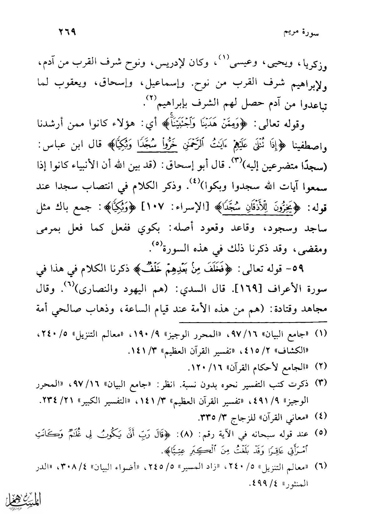 (¬6) "معالم التنزيل" 5/ 240، "زاد المسير" 5/ 245، "أضواء البيان" 4/ 308، "الدر المنثور" 4/ 499.