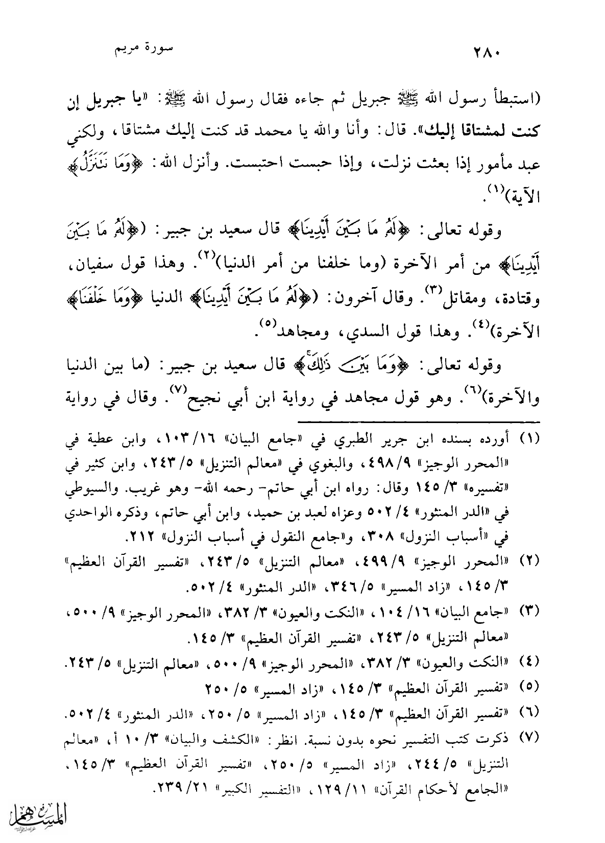 (¬2) "المحرر الوجيز" 9/ 499، "معالم التنزيل" 5/ 243، "تفسير القرآن العظيم" 3/ 145، "زاد المسير" 5/ 346، "الدر المنثور" 4/ 502.