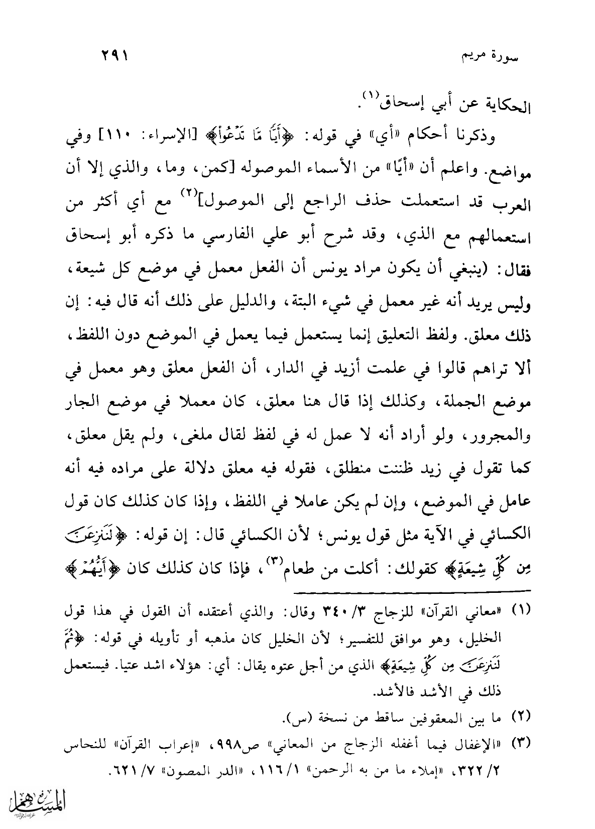 (¬3) "الإغفال فيما أغفله الزجاج من المعاني" ص 998، "إعراب القرآن" للنحاس 2/ 322، "إملا ما من به الرحمن" 1/ 116، "الدر المصون" 7/ 621.
