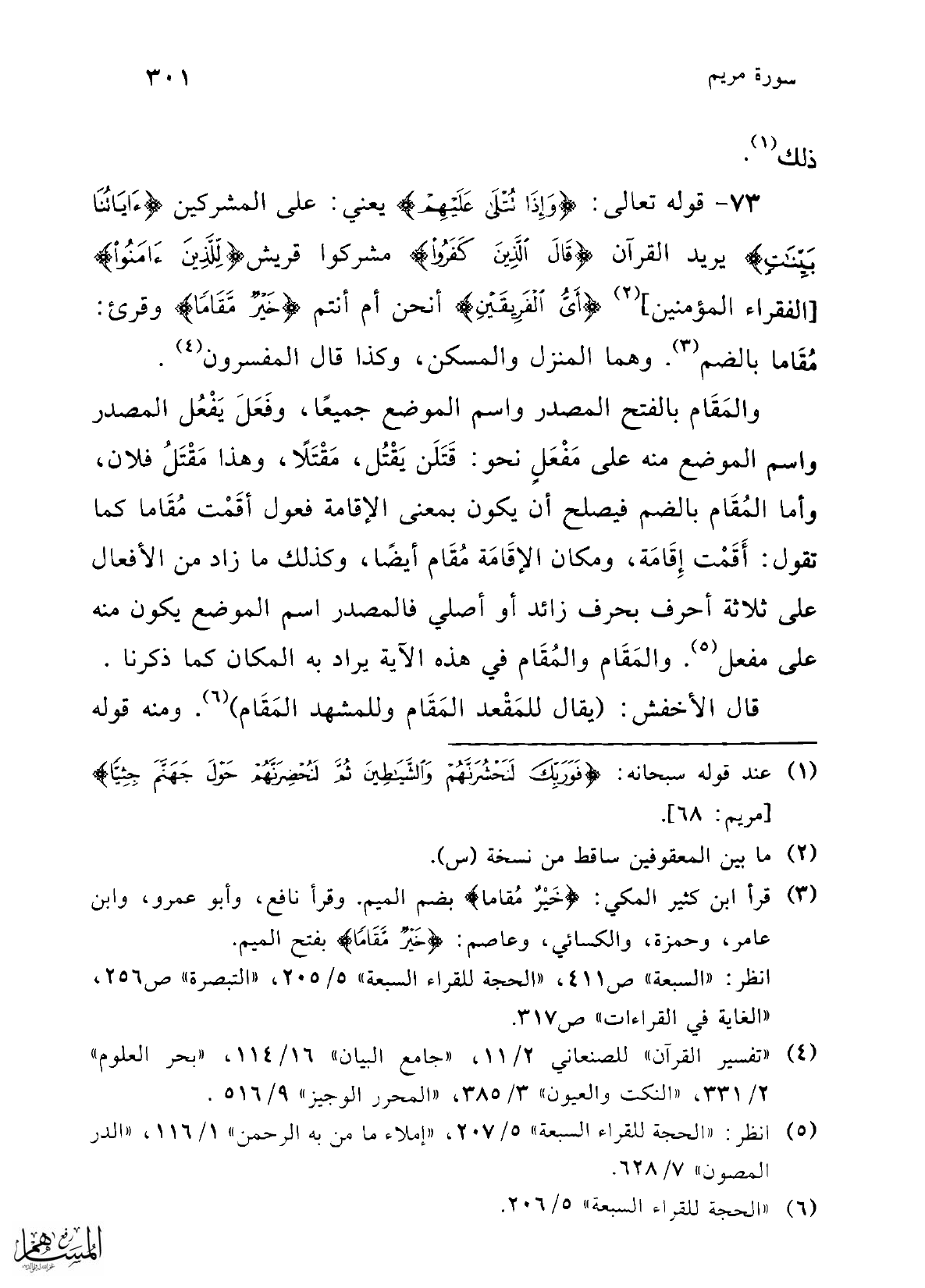 (¬5) انظر: "الحجة للقراء السبعة" 5/ 207، "إملاء ما من به الرحمن" 1/ 116، "الدر المصون" 7/ 628.