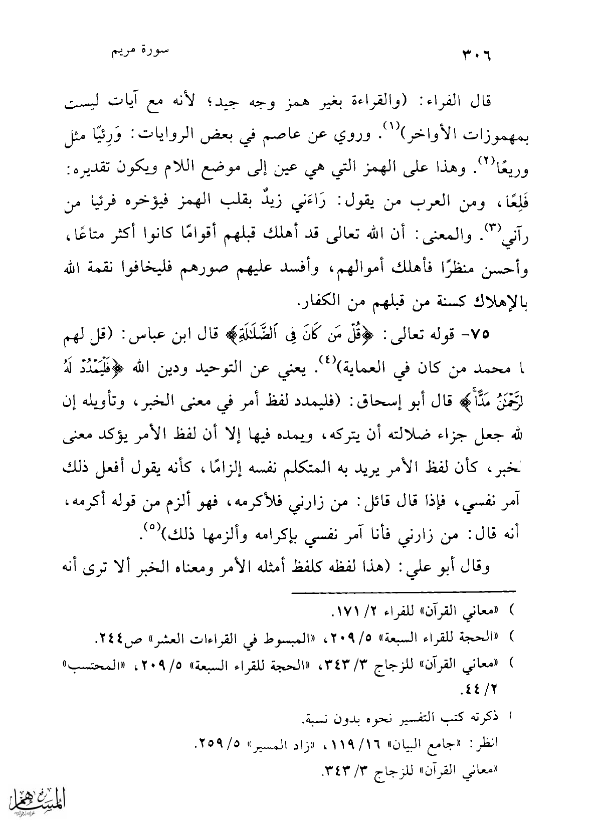 (5) "معاني القرآن" للزجاج 3/ 342.