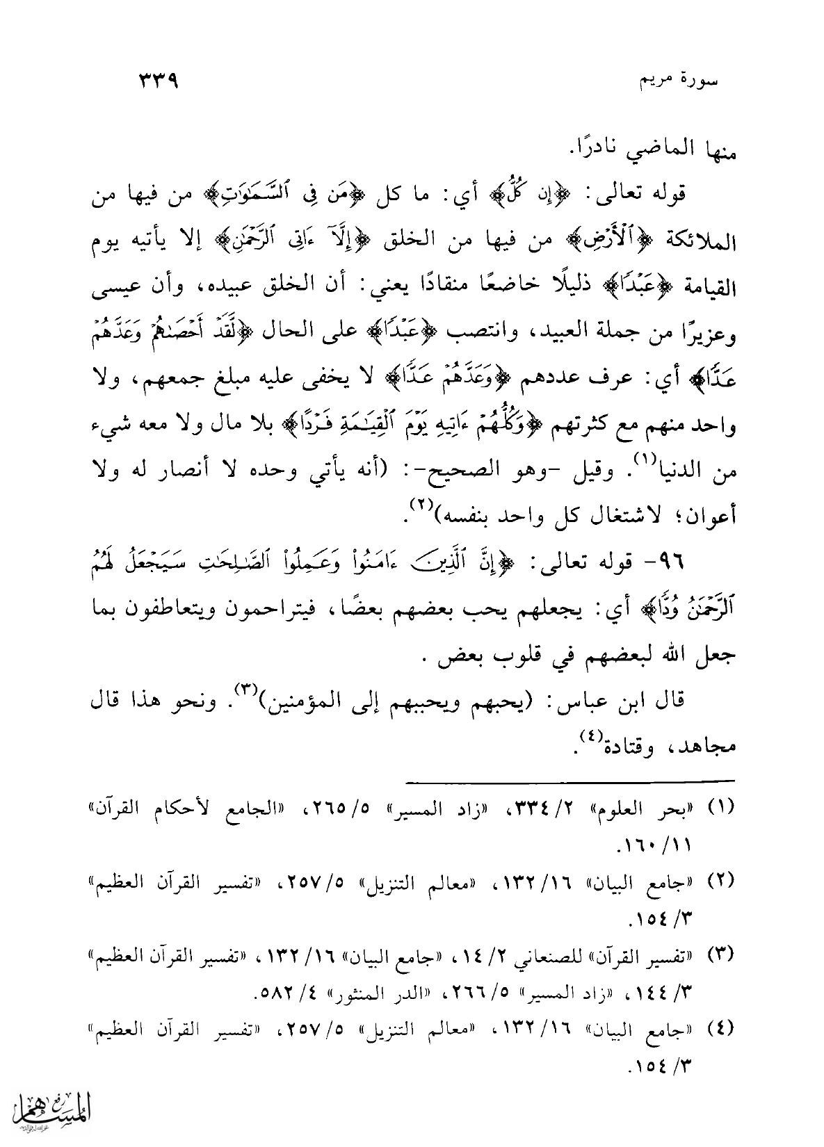 (¬1) "بحر العلوم" 2/ 334، "زاد المسير" 5/ 265، "الجامع لأحكام القرآن" 11/ 160.