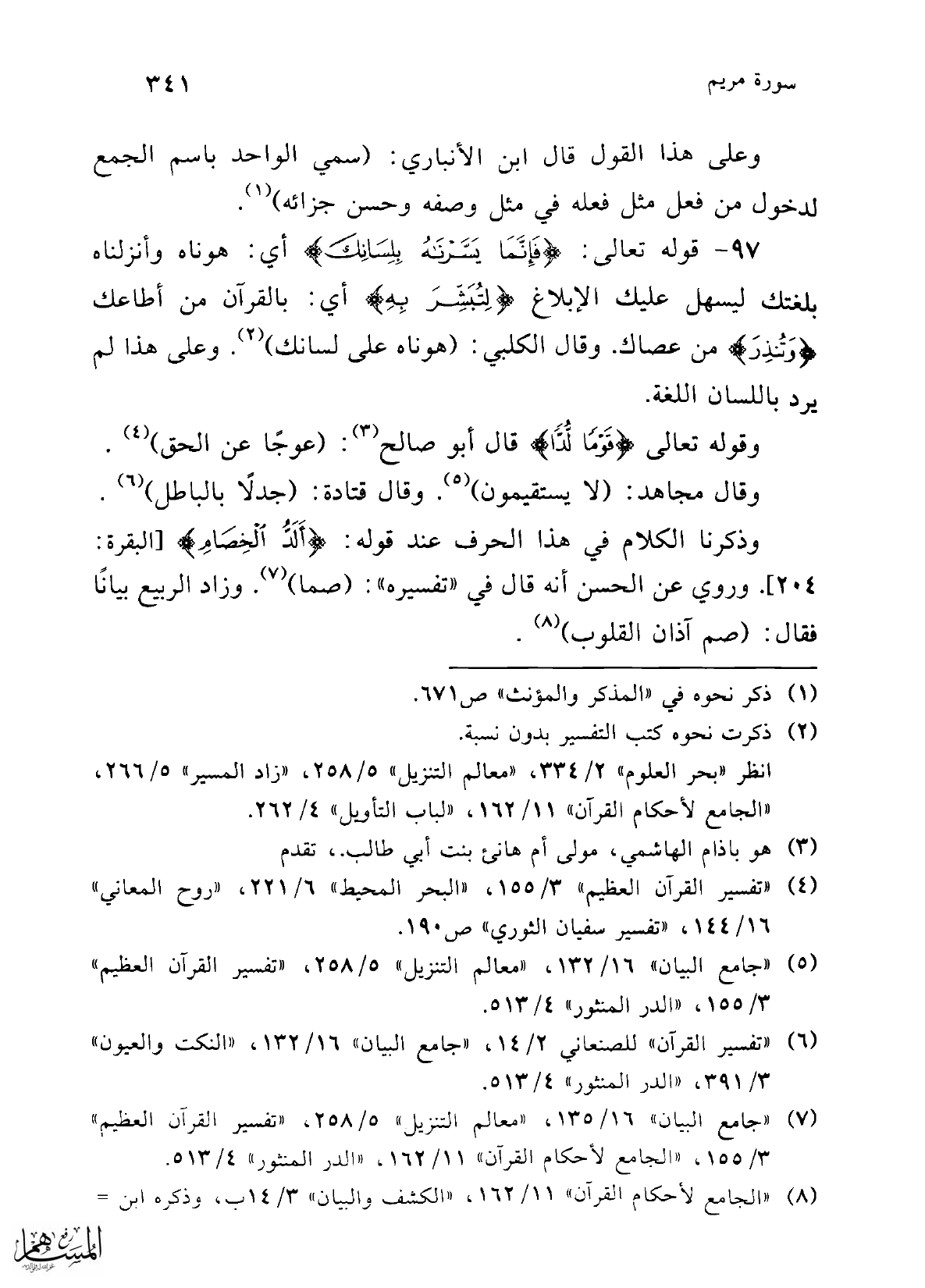 (¬4) "تفسير القرآن العظيم" 3/ 155، "البحر المحيط" 6/ 221، "روح المعاني" 16/ 144، "تفسير سفيان الثوري" ص 190.