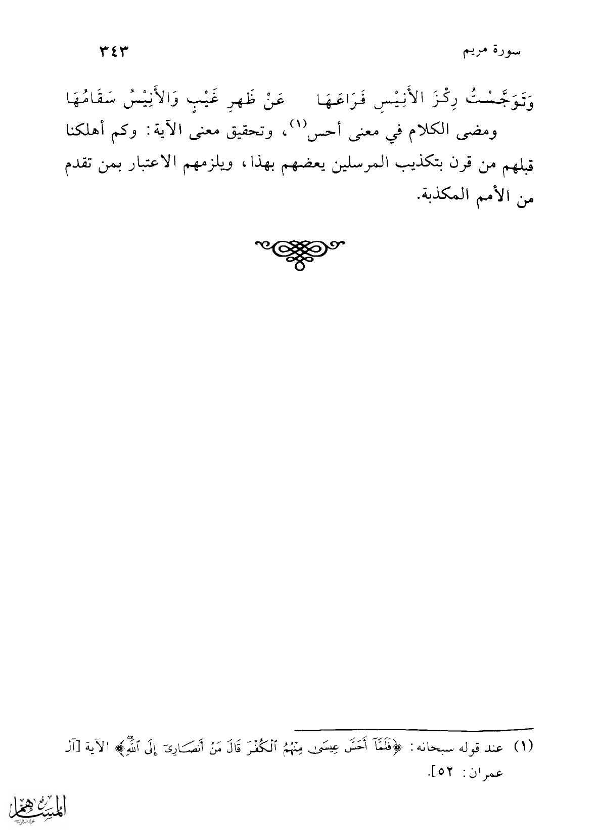 (¬1) عند قوله سبحانه: {فَلَمَّا أَحَسَّ عِيسَى مِنْهُمُ الْكُفْرَ قَالَ مَنْ أَنْصَارِي إِلَى اللَّه} الآية [آل عمران: 52].