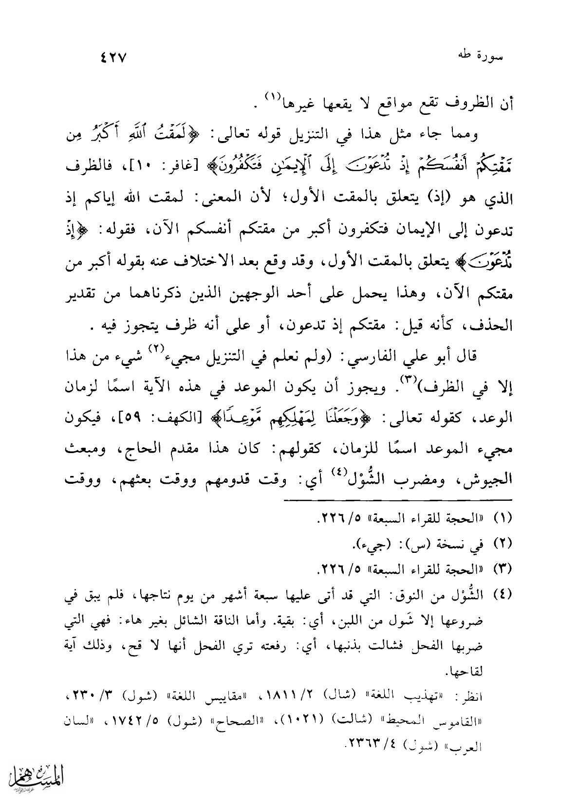 (¬1) "الحجة للقراء السبعة" 5/ 226.