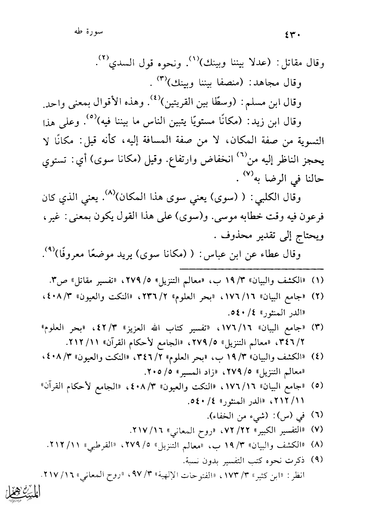 وقال عطاء عن ابن عباس: ((مكانا سوى) يريد موضعًا معروفاً) (¬9).