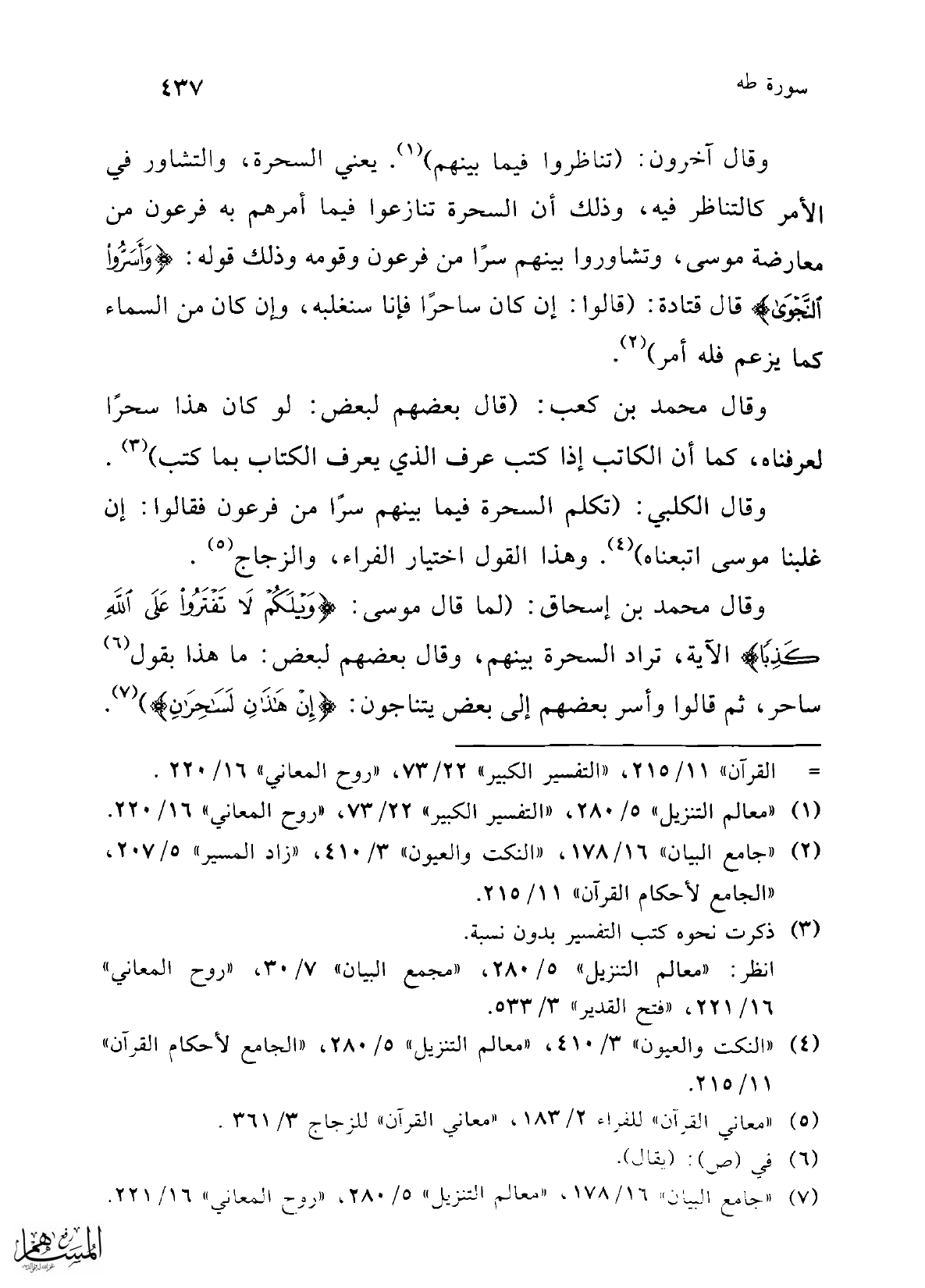 (¬1) "معالم التنزيل" 5/ 280، "التفسير الكبير" 22/ 73، "روح المعاني" 16/ 220.