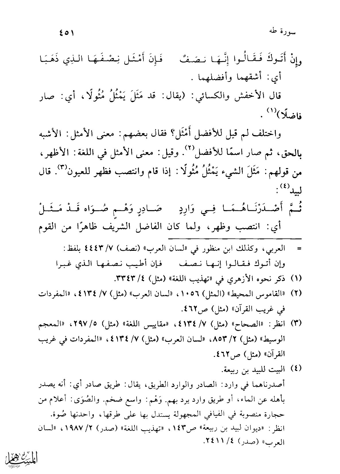 (¬2) "القاموس المحيط" (المثل) 1056، "لسان العرب" (مثل) 7/ 4134، "المفردات في غريب القرآن" (مثل) ص 462.