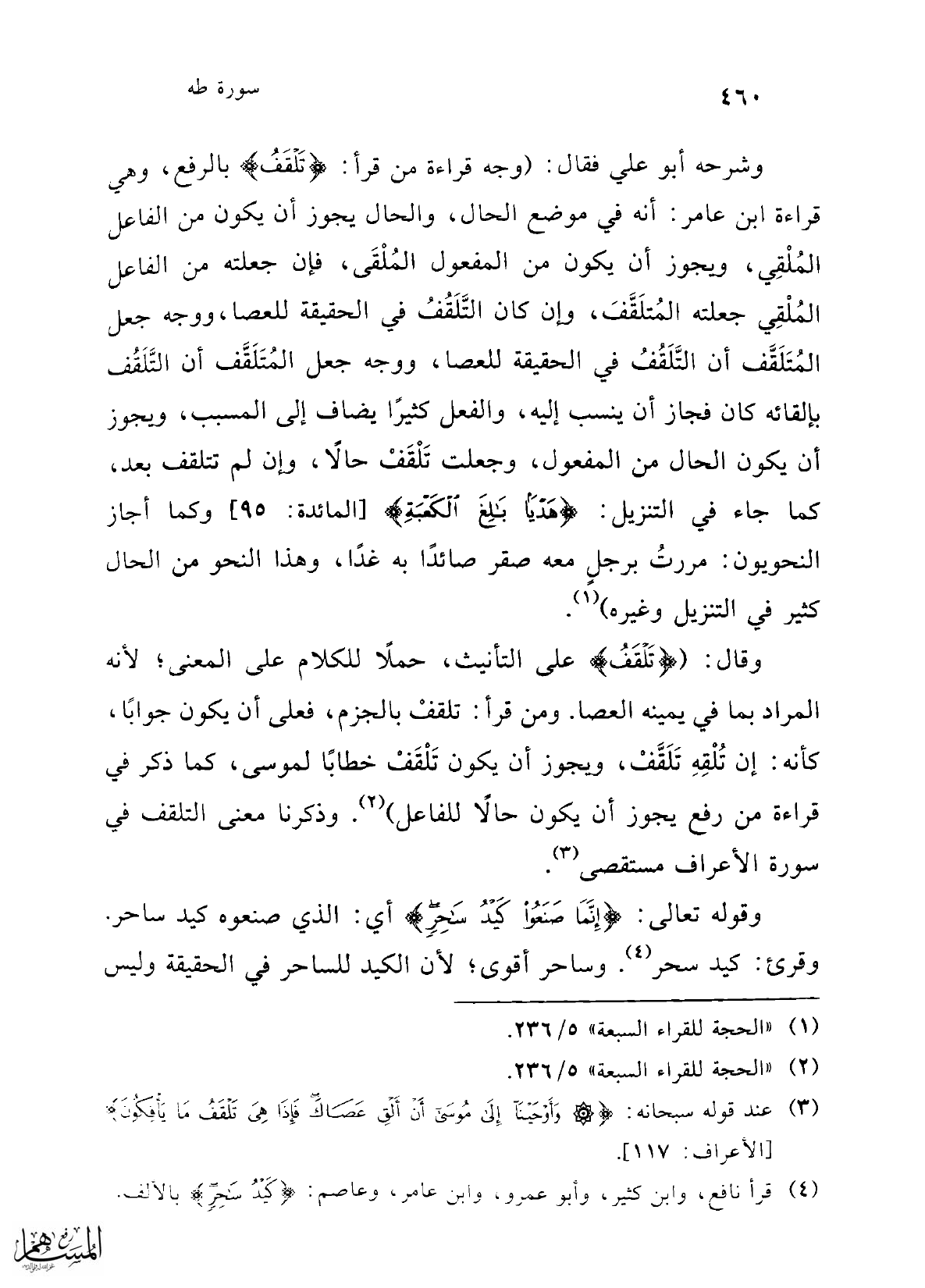 (¬2) "الحجة للقراء السبعة" 5/ 236.