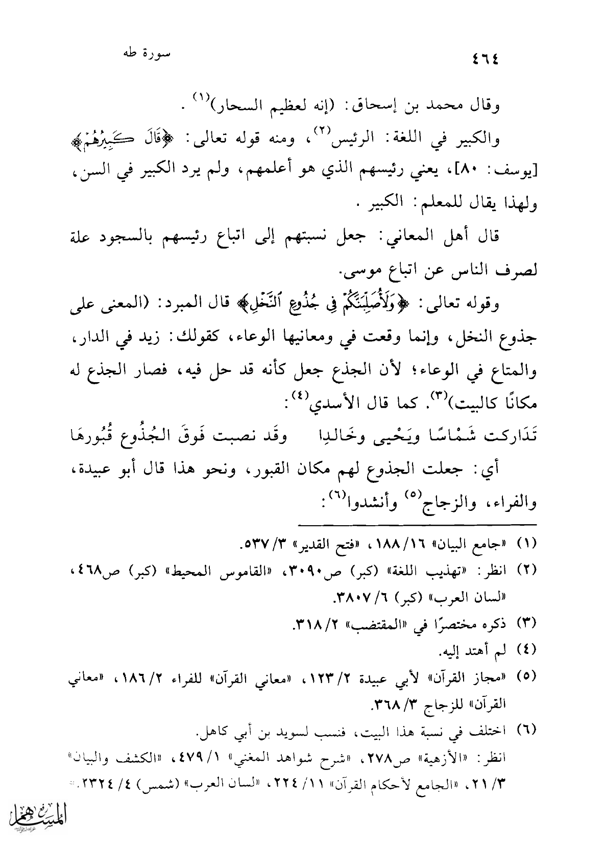 (¬5) "مجاز القرآن" لأبي عبيدة 2/ 123، "معاني القرآن" للفراء 2/ 186، "معاني القرآن" للزجاج 3/ 368.