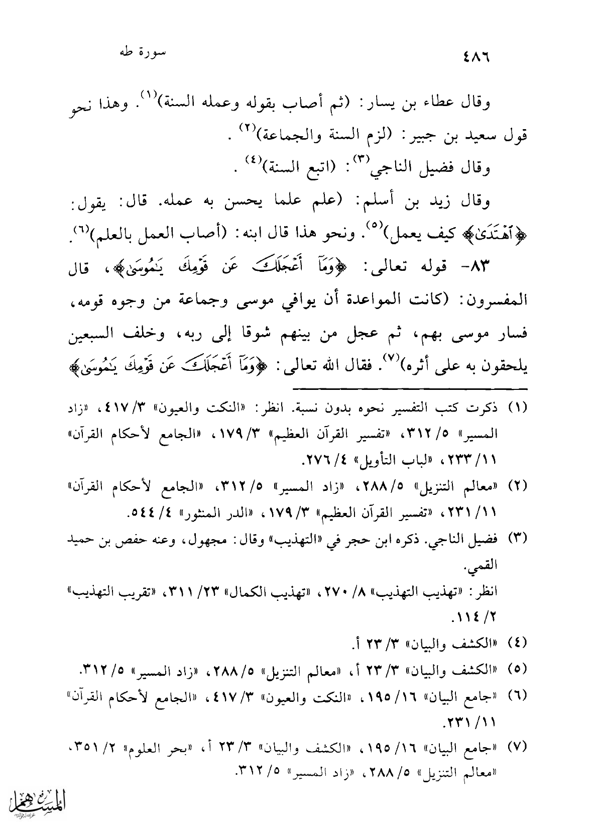 (¬2) "معالم التنزيل" 5/ 288، "زاد المسير" 5/ 312، "الجامع لأحكام القرآن" 11/ 231، "تفسير القرآن العظيم" 3/ 179، "الدر المنثور" 4/ 544.