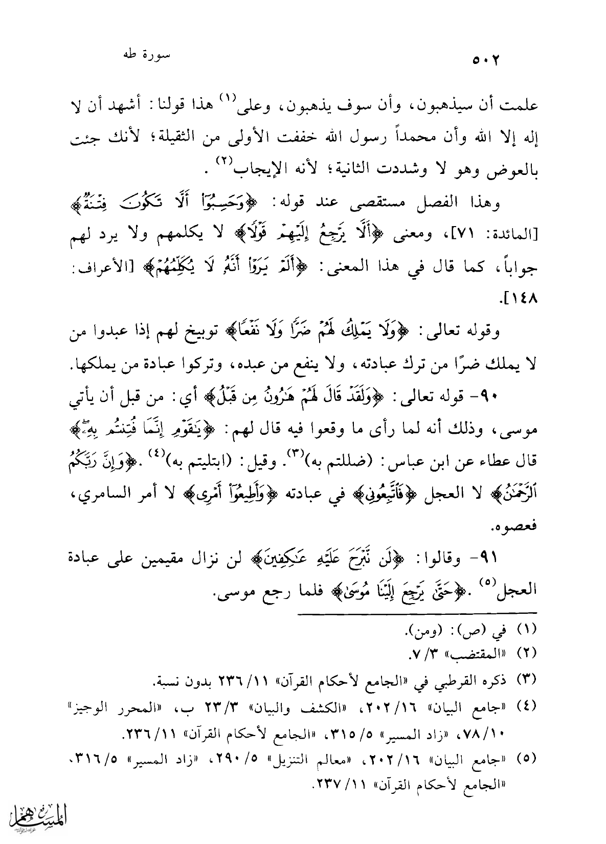 (¬5) "جامع البيان" 16/ 202، "معالم التنزيل" 5/ 290، "زاد المسير" 5/ 316. "الجامع لأحكام القرآن" 11/ 237.
