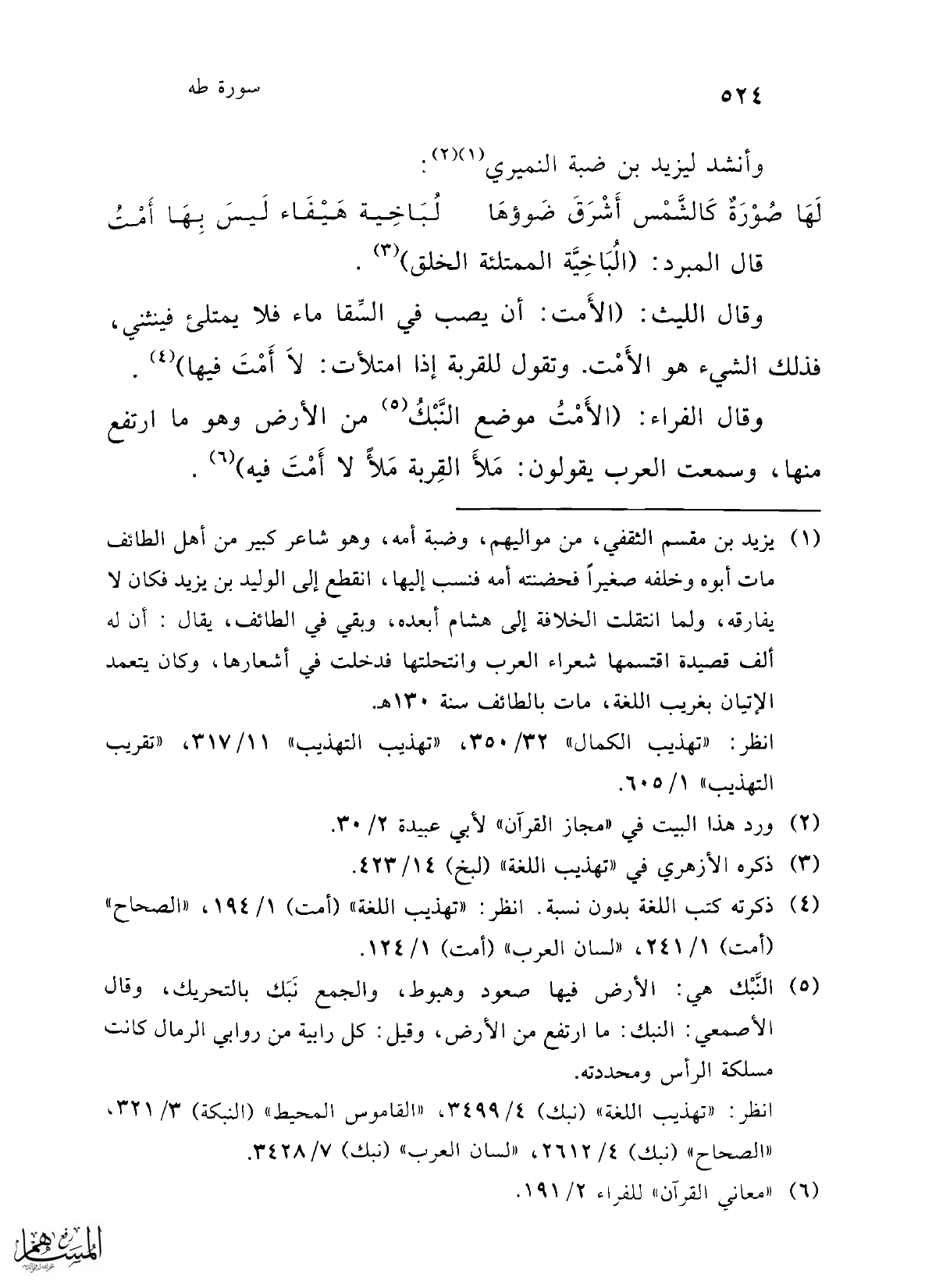 لَهَا صُوْرَةٌ كَالشَّمْس أَشْرَقَ ضَوؤهَا ... لُبَاخِية هَيْفَاء لَيسَ بِهَا أَمْتُ
