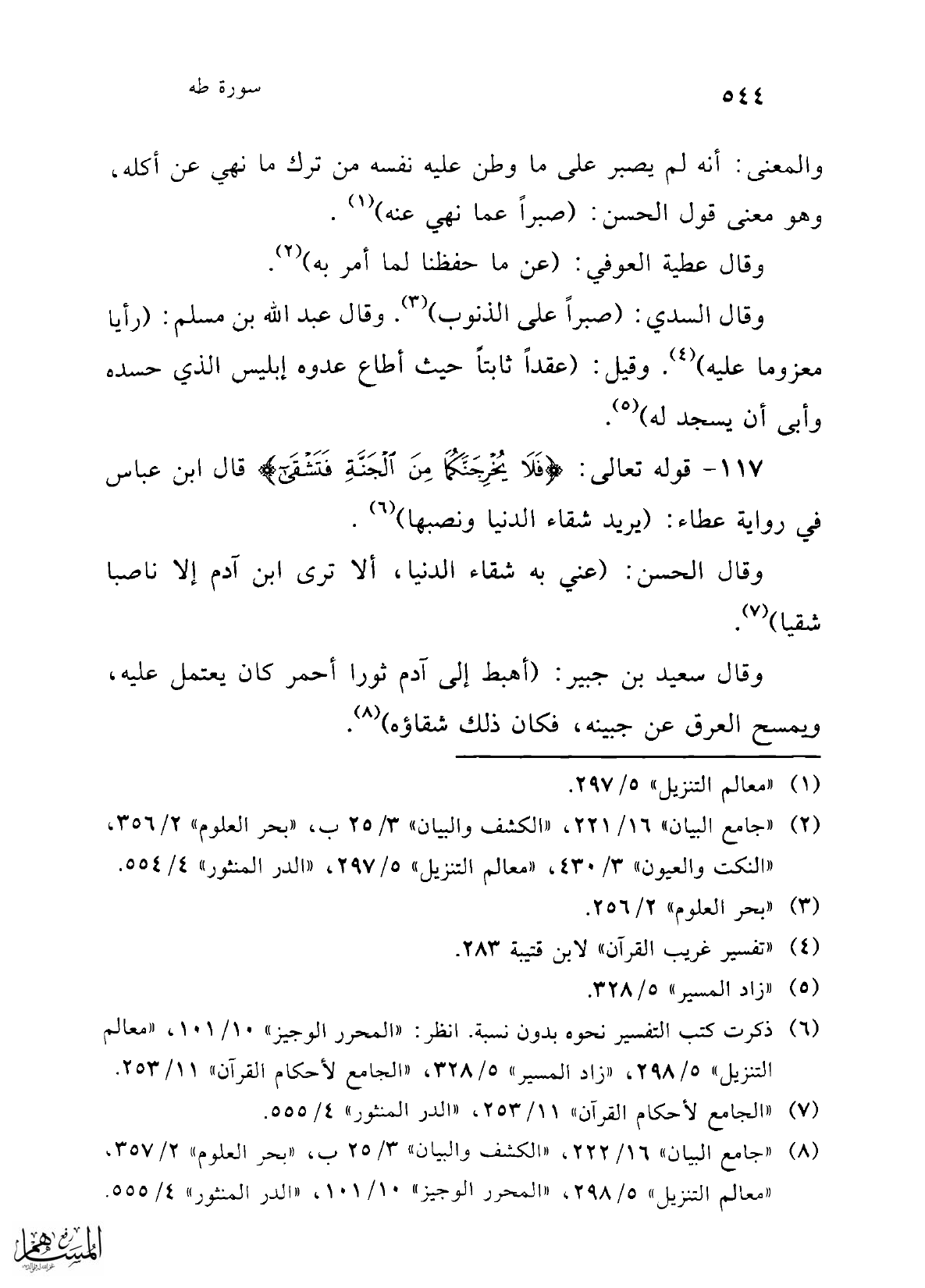 (¬8) "جامع البيان" 16/ 222، "الكشف والبيان" 3/ 25 ب، "بحر العلوم" 2/ 357، "معالم التنزيل" 5/ 298، "المحرر الوجيز" 10/ 101، "الدر المنثور" 4/ 555.