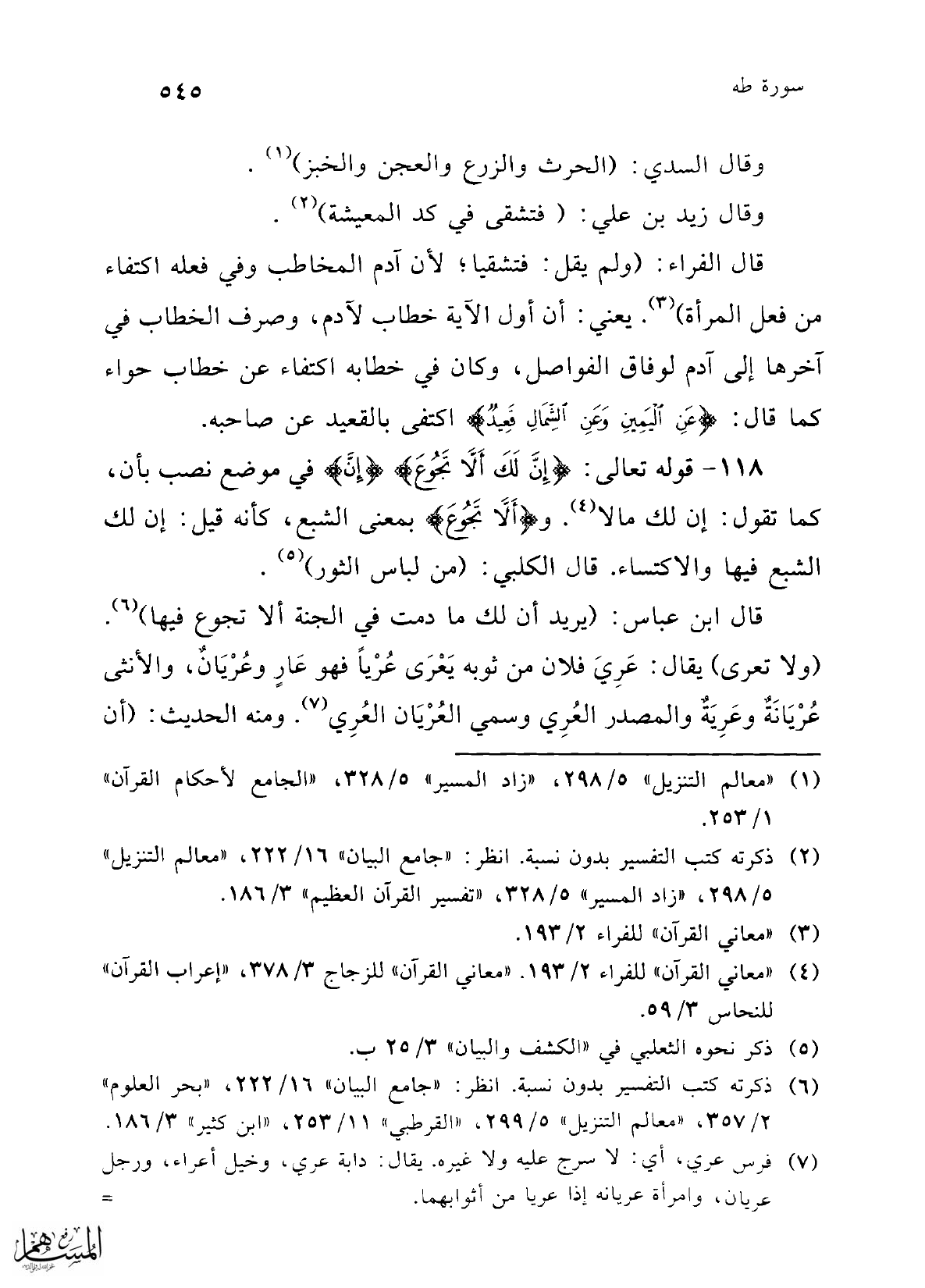 (¬1) "معالم التنزيل" 5/ 298، "زاد المسير" 5/ 328، "الجامع لأحكام القرآن" 1/ 253.