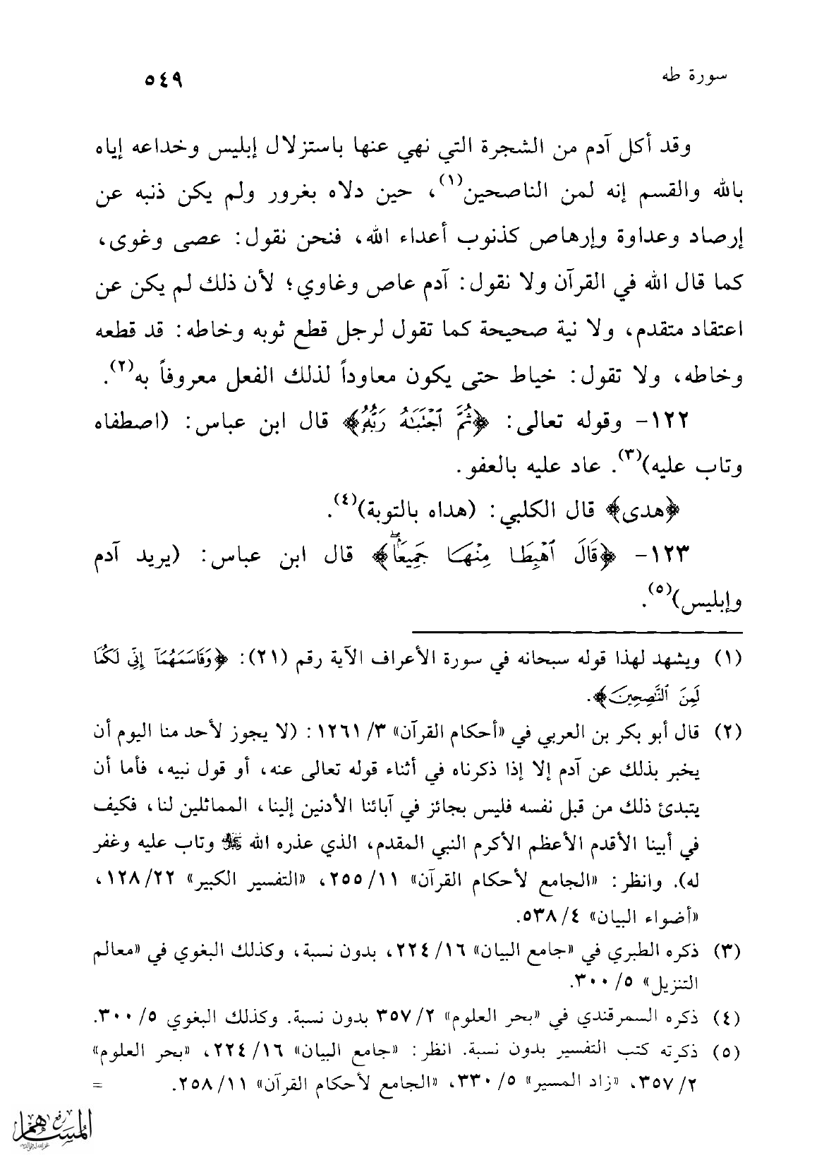 122 - وقوله تعالى: {ثُمَّ اجْتَبَاهُ رَبُّهُ} قال ابن عباس: (اصطفاه وتاب عليه) (¬3). عاد عليه بالعفو.