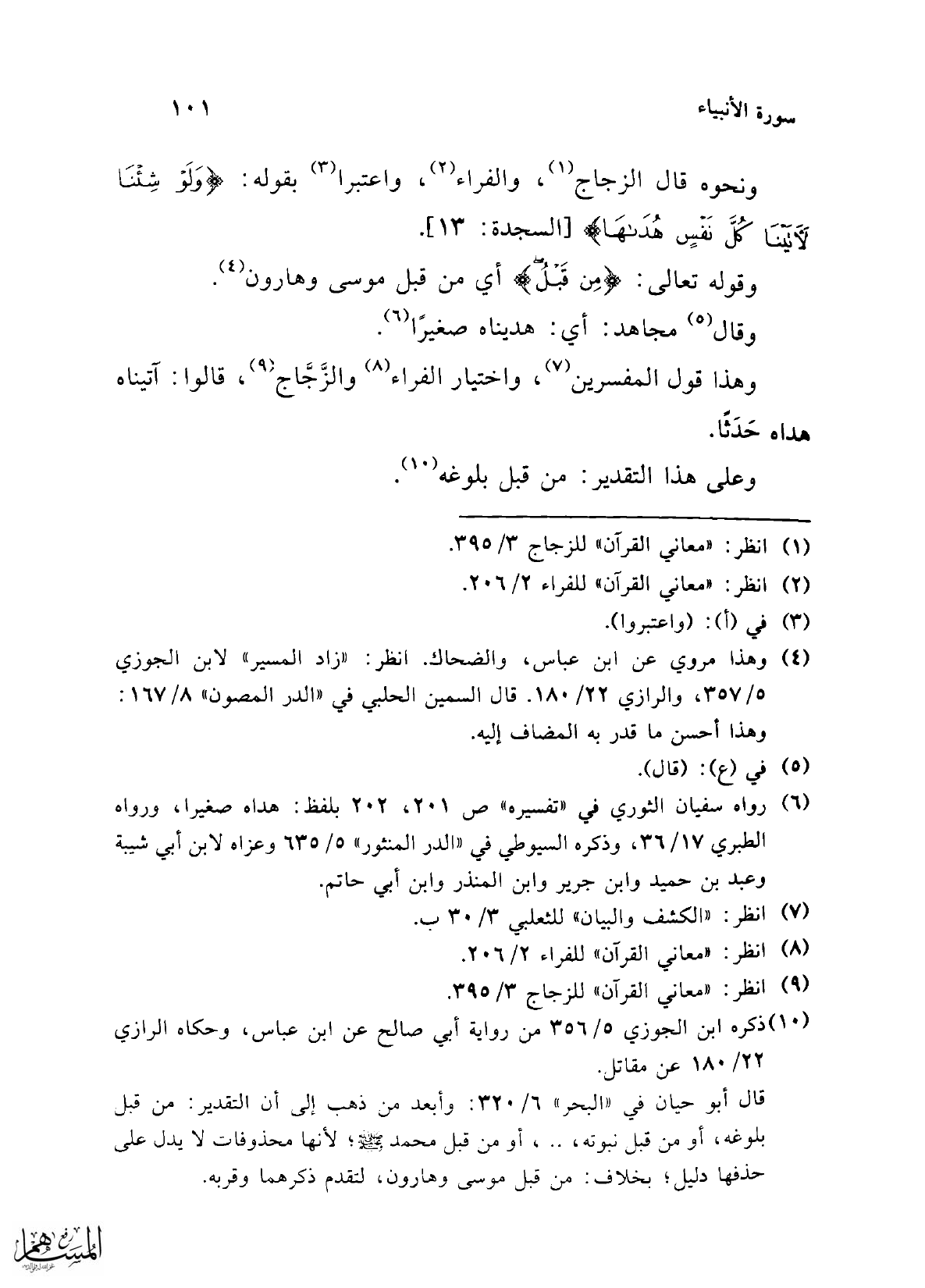 (¬9) انظر: "معاني القرآن" للزجاج 3/ 395.