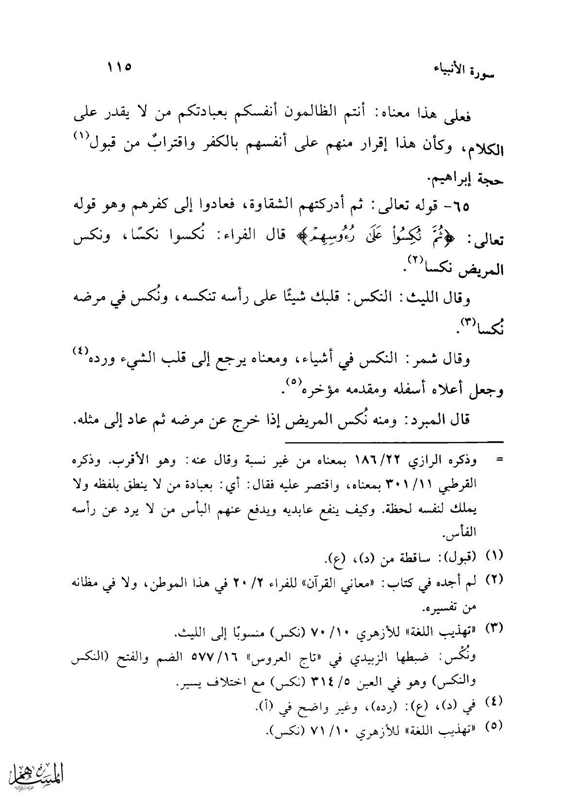 (¬5) "تهذيب اللغة" للأزهري 10/ 71 (نكس).