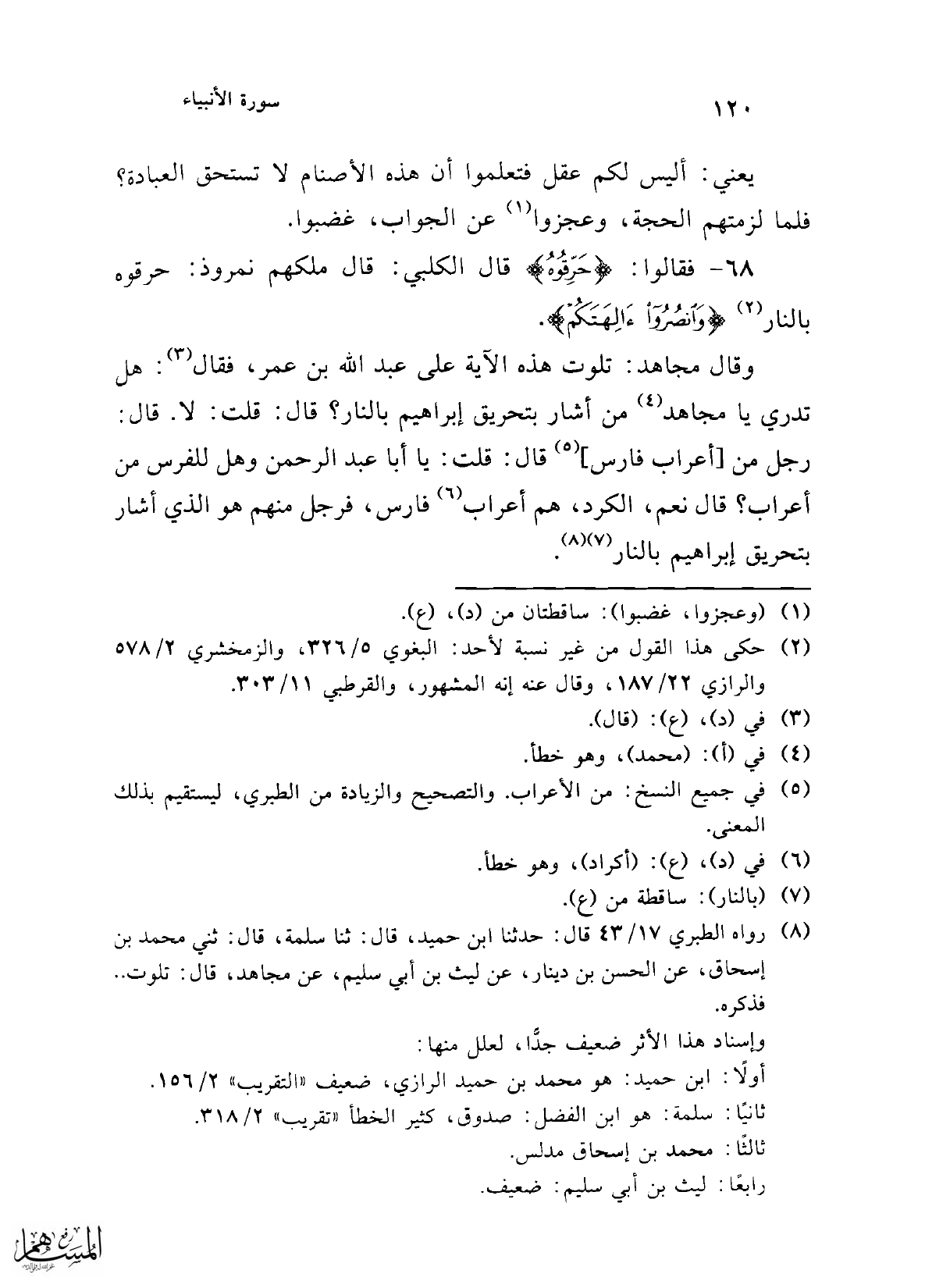 (¬8) رواه الطبري 17/ 43 قال: حدثنا ابن حميد، قال: ثنا سلمة، قال: ثني محمد بن إسحاق، عن الحسن بن دينار، عن ليث بن أبي سليم، عن مجاهد، قال: تلوت .. فذكره.