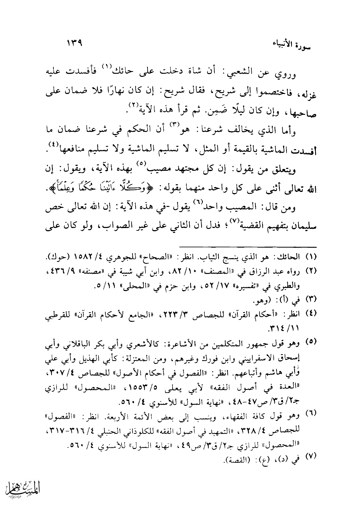 ويتعلق من يقول: إن كل مجتهد مصيب (¬5) بهذه الآية، ويقول: إن الله تعالى أثنى على كل واحد منهما بقوله: {وَكُلًّا آتَيْنَا حُكْمًا وَعِلْمًا}.