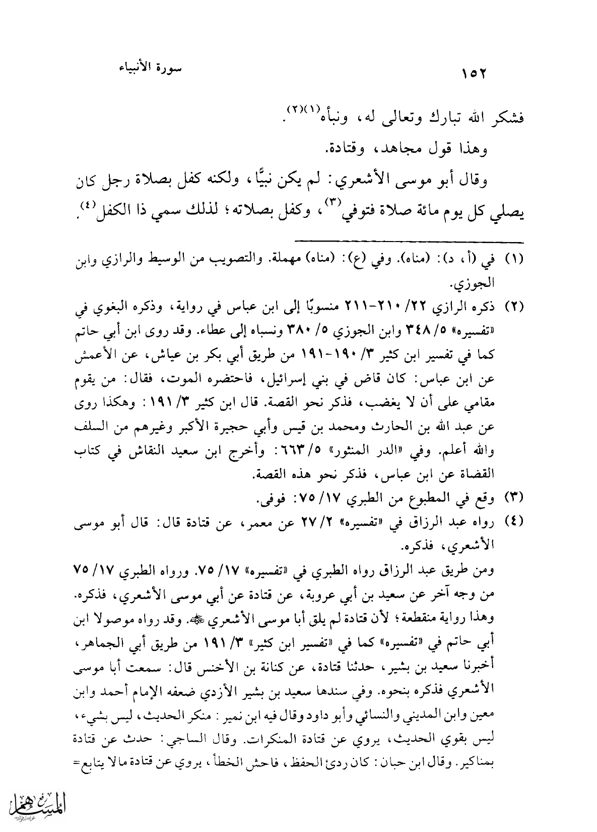 وقال أبو موسى الأشعري: لم يكن نبيًّا, ولكنه كفل بصلاة رجل كان يصلي كل يوم مائة صلاة فتوفي (¬3)، وكفل بصلاته؛ لذلك سمي ذا الكفل (¬4).