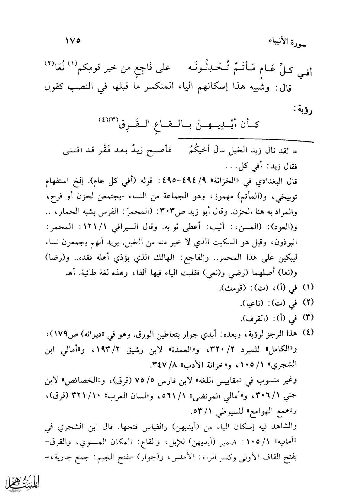 (¬4) هذا الرجز لرؤبة، وبعده: أيدي جوار يتعاطين الورق. وهو في "ديوانه" (ص 179)، و"الكامل" للمبرد 2/ 320، و"العمدة" لابن رشيق 2/ 193، و"أمالي ابن الشجري" 1/ 105، و"خزانة الأدب" 8/ 347.