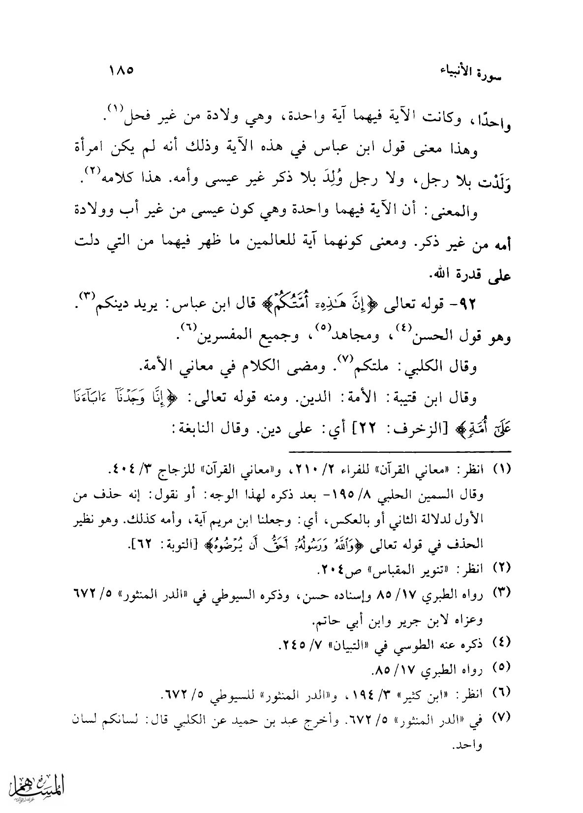 92 - قوله تعالى {إِنَّ هَذِهِ أُمَّتُكُمْ} قال ابن عباس: يريد دينكم (¬3). وهو قول الحسن (¬4)، ومجاهد (¬5)، وجميع المفسرين (¬6).