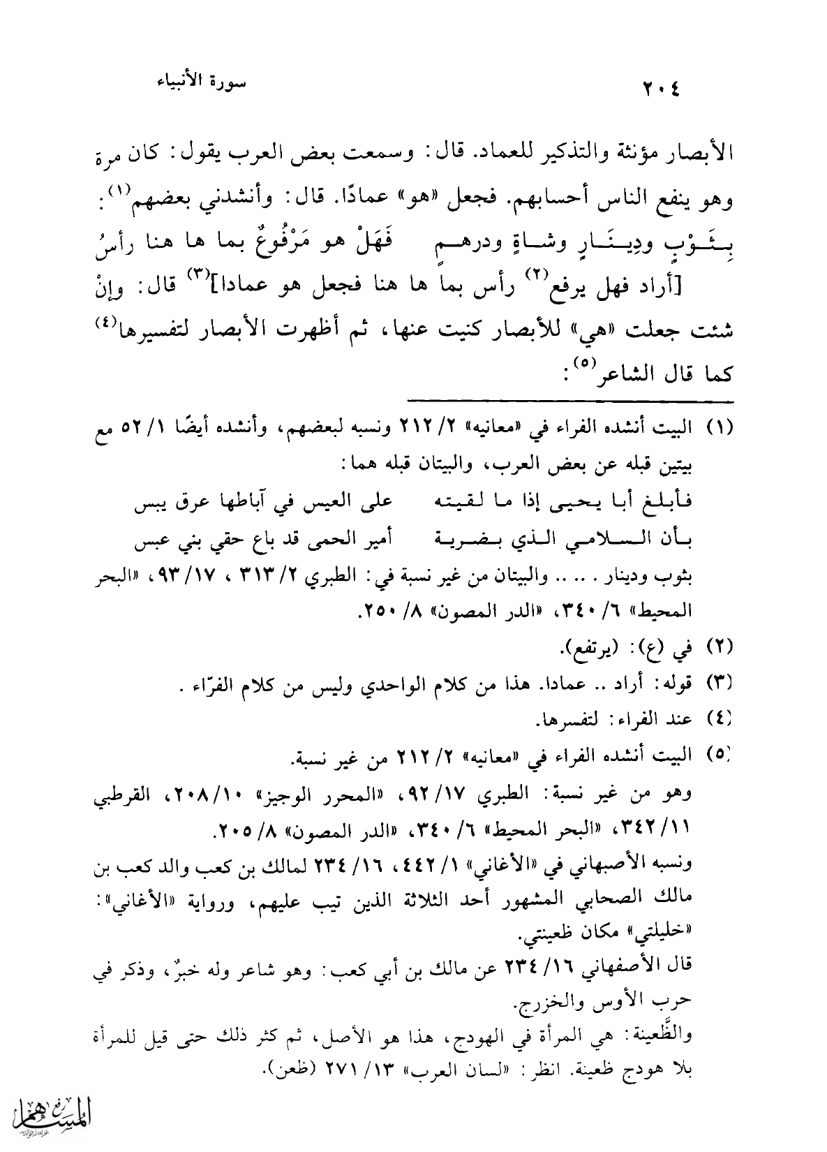 وهو من غير نسبة: الطبري 17/ 92، "المحرر الوجيز" 10/ 208، القرطبي 11/ 342، "البحر المحيط" 6/ 340، "الدر المصون" 8/ 205.