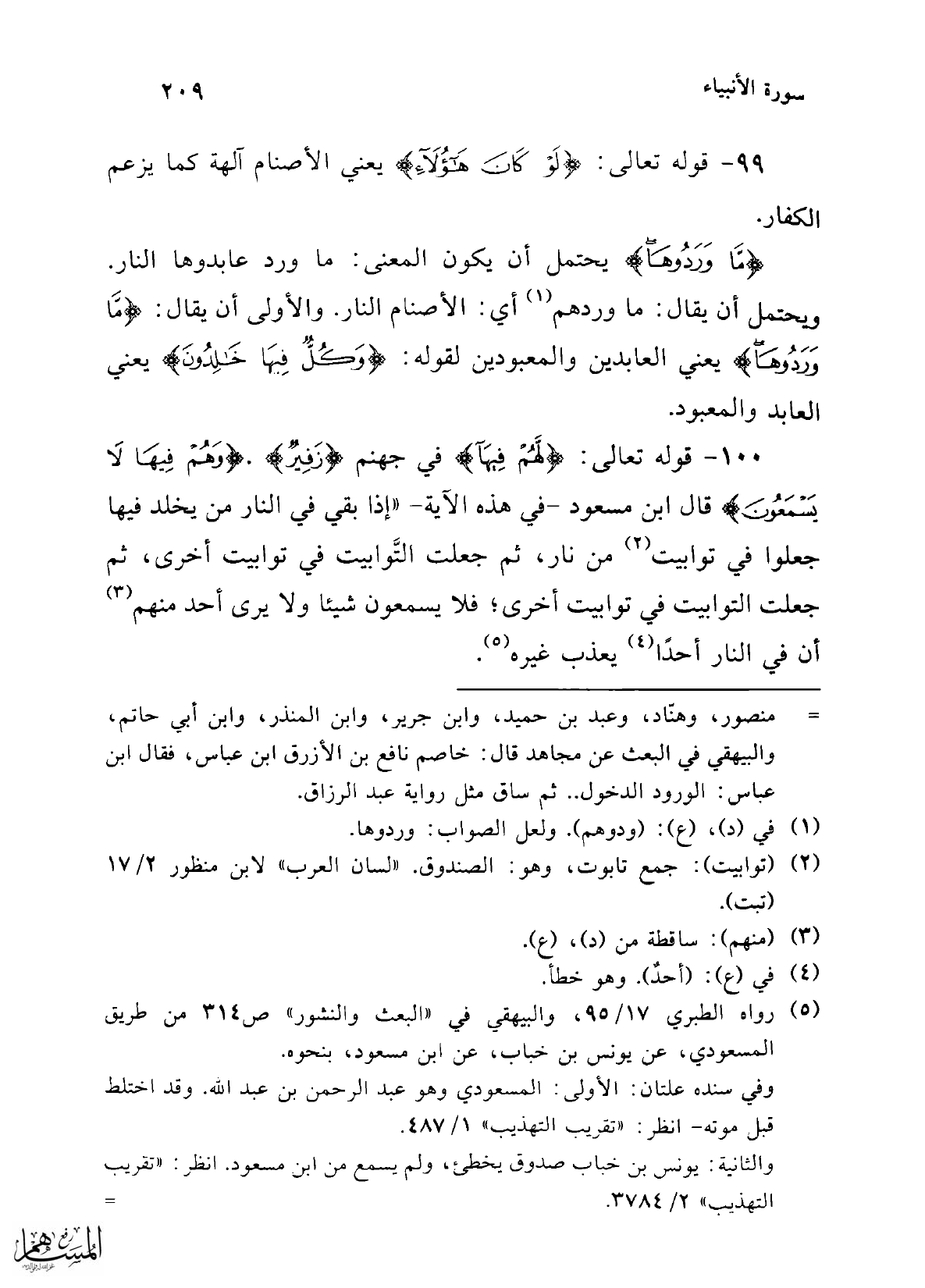 (¬5) رواه الطبري 17/ 95، والبيهقي في "البعث والنشور" ص 314 من طريق المسعودي، عن يونس بن خباب، عن ابن مسعود، بنحوه.