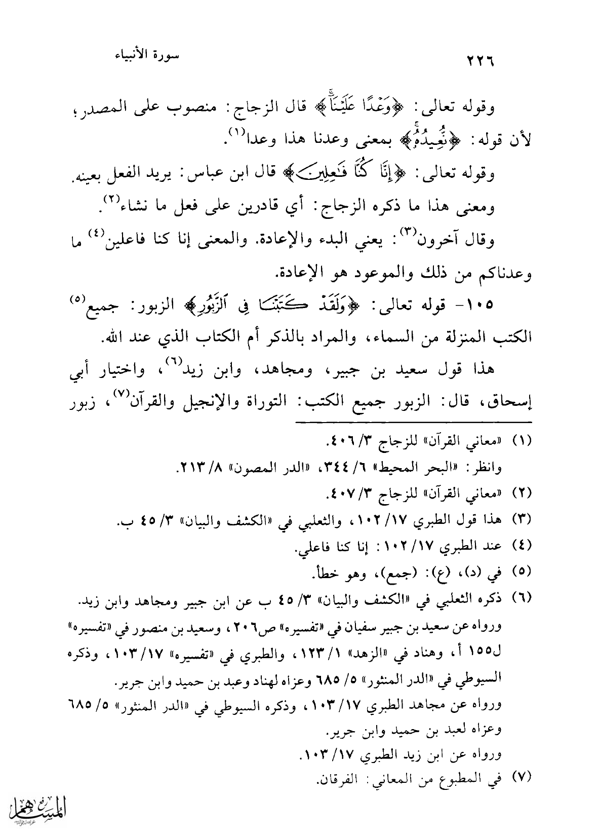 105 - قوله تعالى: {وَلَقَدْ كَتَبْنَا فِي الزَّبُورِ} الزبور: جميع (¬5) الكتب المنزلة من السماء، والمراد بالذكر أم الكتاب الذي عند الله.