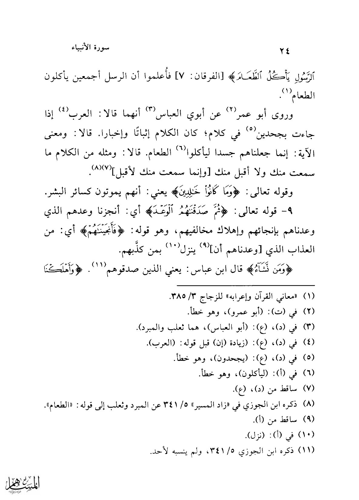 (¬1) "معاني القرآن وإعرابه" للزجاج 3/ 385.