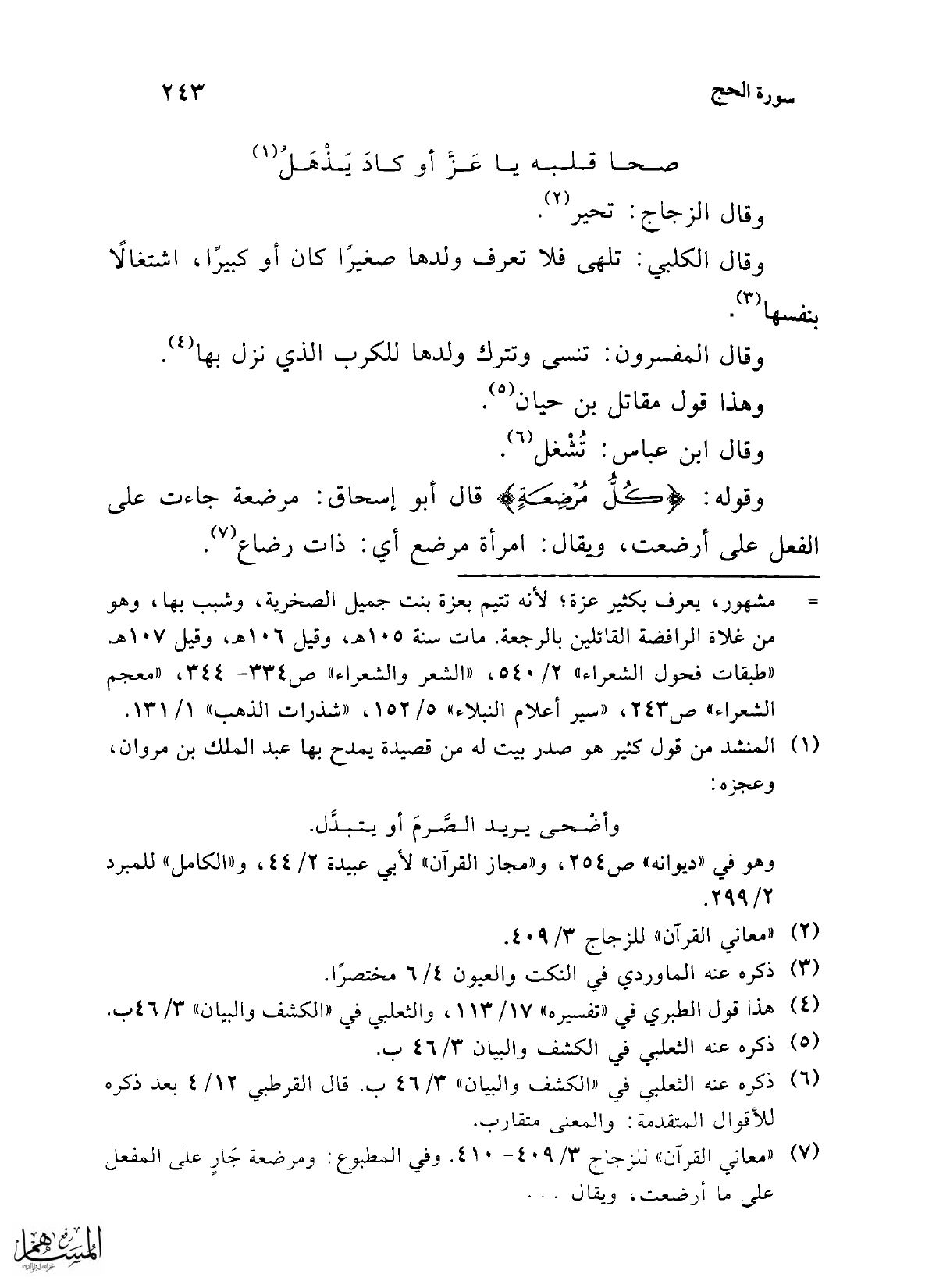 (¬7) "معاني القرآن" للزجاج 3/ 409 - 410. وفي المطبوع: ومرضحة جَارٍ على المفعل على ما أرضعت، ويقال ...