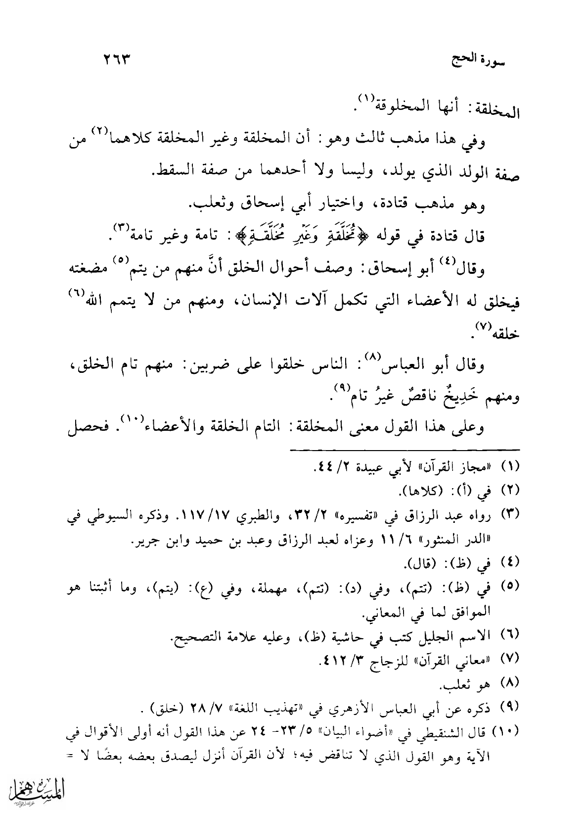قال قتادة في قوله {مُخَلَّقَةٍ وَغَيْرِ مُخَلَّقَةٍ}: تامة وغير تامة (¬3).
